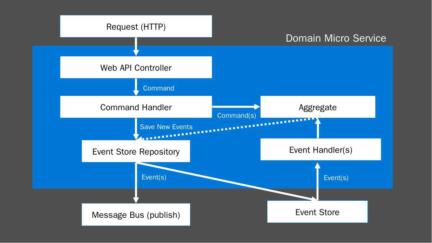Overall Approach. Commands & Queries. EventStore. Domain MicroService(s). RabbitMQ. Commands. Queries. Event Sourcing. Domain Events. Precomputed.