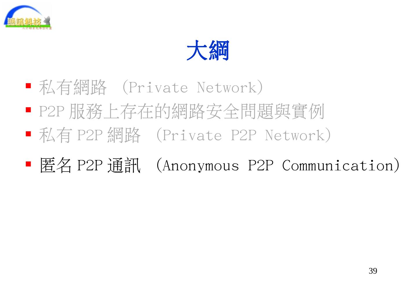 匿名P2P之簡介 - 國立中央大學