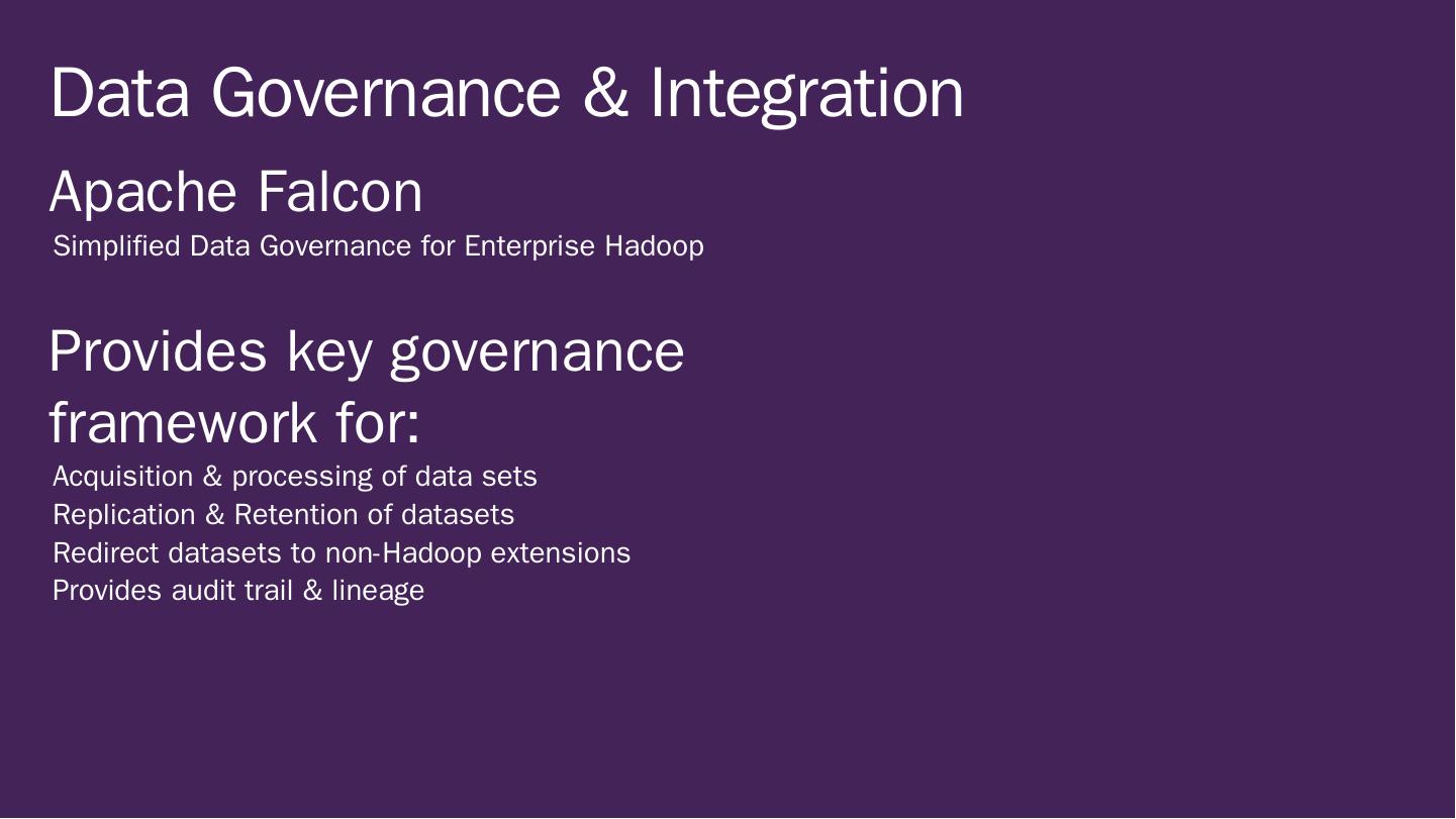 8 .Hadoop within an emerging Modern Data Architecture OPERATIONS TOOLS Provision, Manage & Monitor DEV & DATA TOOLS Build & Test DATA SYSTEM REPOSITORIES SOURCES RDBMS EDW MPP OLTP, ERP, CRM Systems Documents, Emails Web Logs , Click Streams Social Networks Machine Generated Sensor Data Geolocation Data Governance & Integration Security Operations Data Access Data Management APPLICATIONS Business Analytics Custom Applications Packaged Applications OLTP, ERP , CRM Systems Unstructured documents, emails Clickstream Server logs Sentiment, Web Data Sensor. Machine Data Geolocation