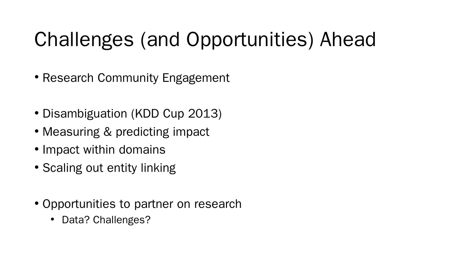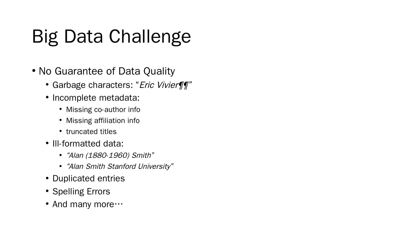 AAAI 2015: Scholarly Big Data: AI Perspectives, ... Big Data Challenge ... Entity linking between KB and DL; Correct and complete missing ...