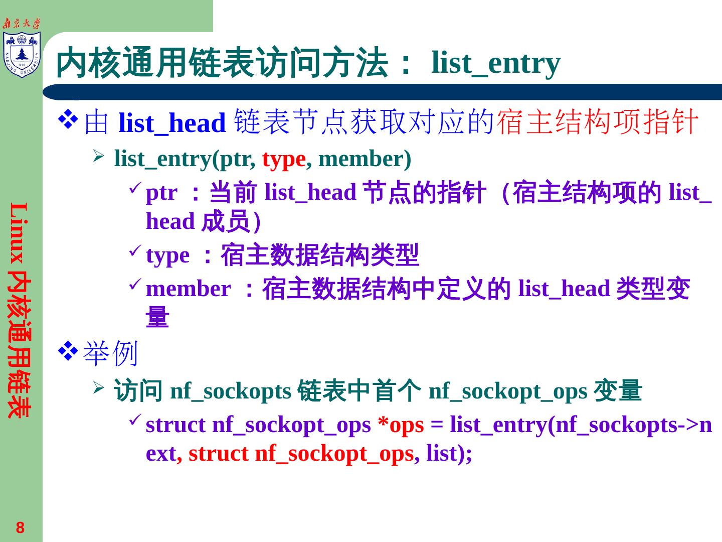 进程与线程基本概念; Linux进程的描述与管理; Linux内核通用链表; Linux线程编程技术; Linux进程的实现机制; Linux线程的实现机制. 3. 内核通用链表. 通用双向链表 ...