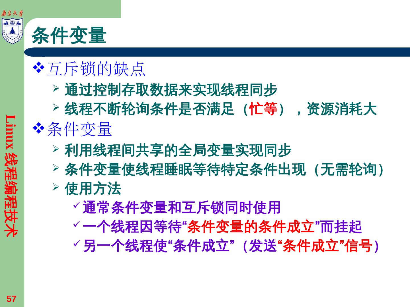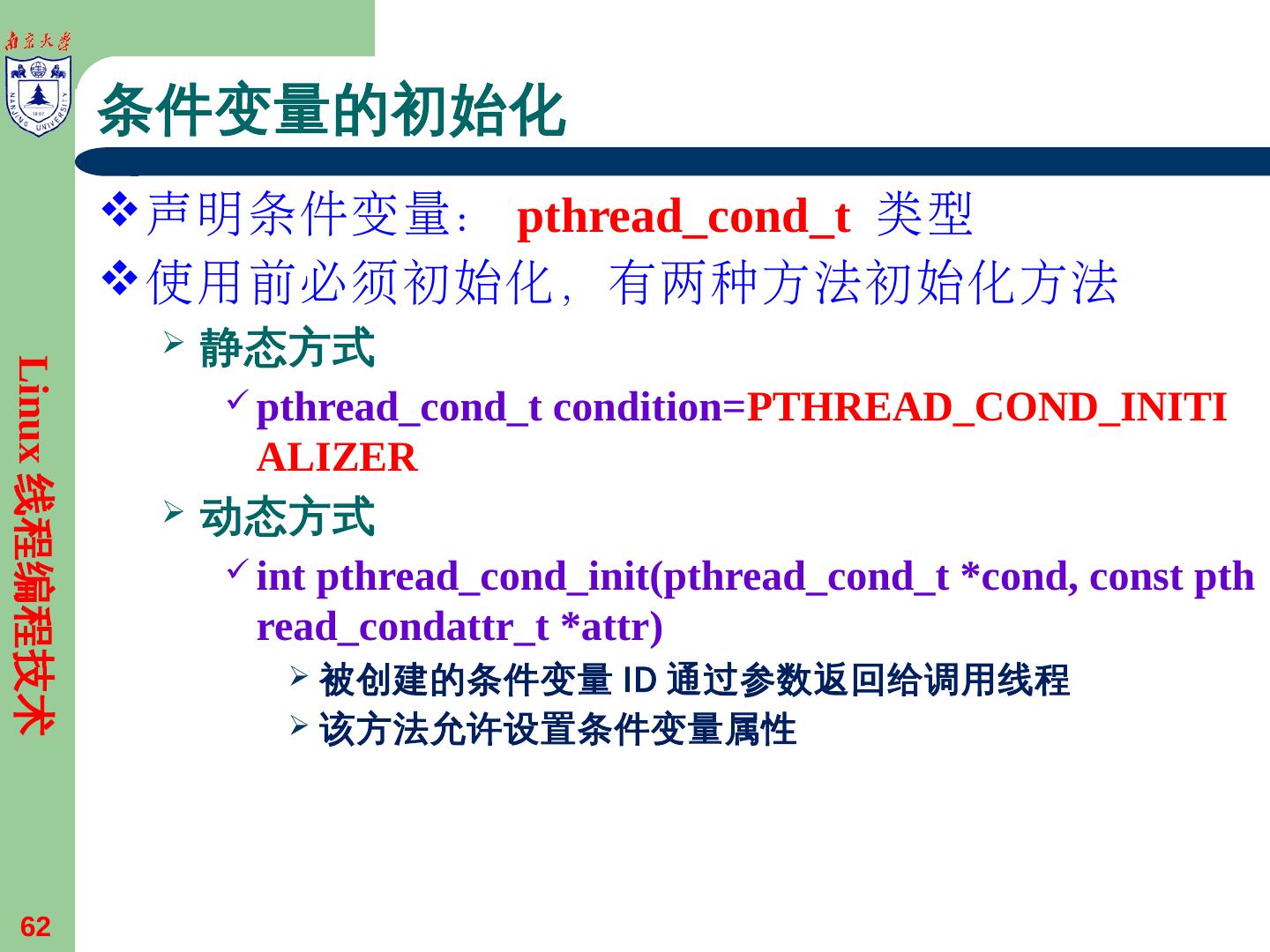设置/查询条件变量属性Linux线程编程技术22 pthread变量 ... - 南京大学IIP