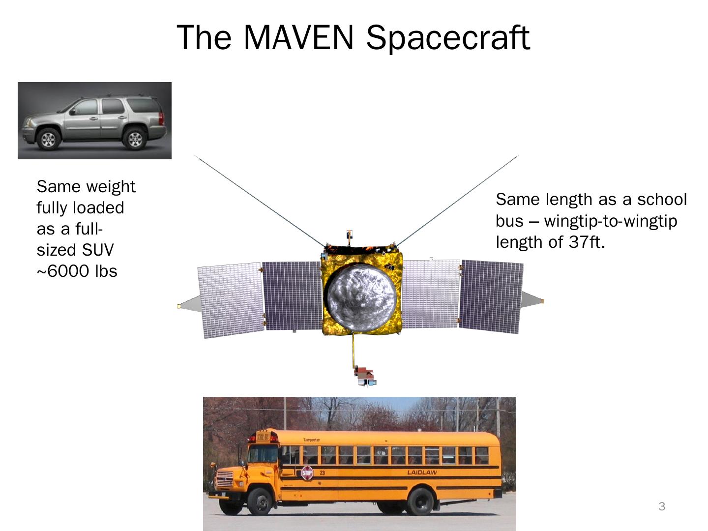 MAVEN: Mission to Mars (Mars Atmosphere and Volatile EvolutioN). Presented by. Dr. Harold A. Geller. 1. 2. Launched: 18 November 2013. Mars Orbit Insertion:.