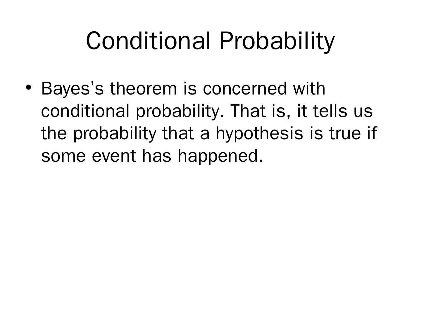 4 .Conditional Probability Bayes’s theorem is concerned with conditional probability. That is, it tells us the probability that a hypothesis is true if some event has happened.