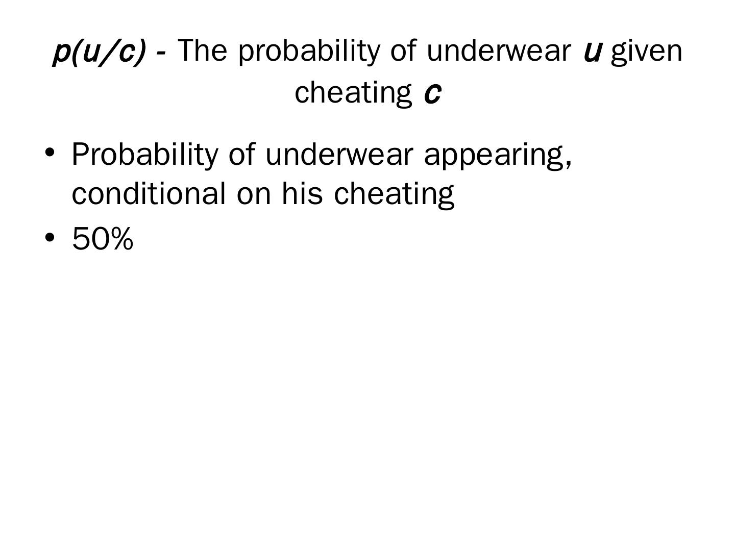 8 .p( u/c ) - The probability of underwear u given cheating c Probability of underwear appearing, conditional on his cheating 50%
