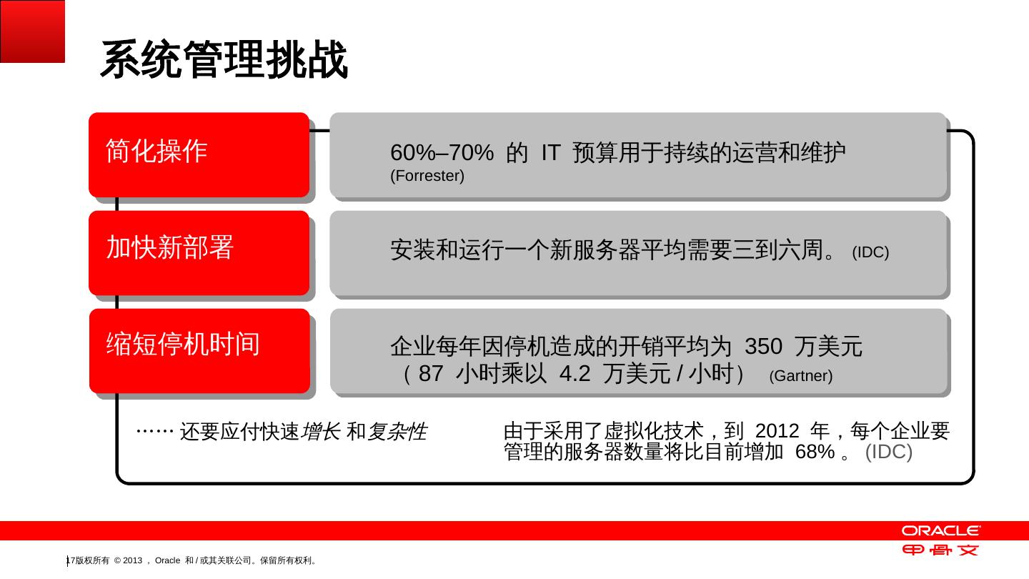 系统. 单独收费. 单独收费. 单独收费. 2 小时现场硬件维修. 操作系统支持/更新 .... 消除复杂性,实现最高可用性; Oracle 白金服务概述; 工作原理; 总结; 问答. 版权所有© ...