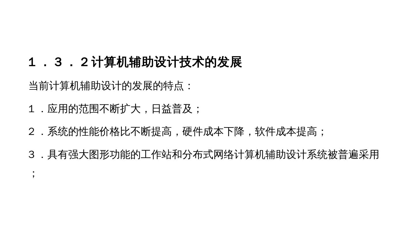 工作原理:首先将欲显示的图形以二进制形式存放在帧缓存中。 ... 计算机辅助设计的软件通常包括操作系统、各种程序语言和编译程序、常用服务例行程序以及应用 ...