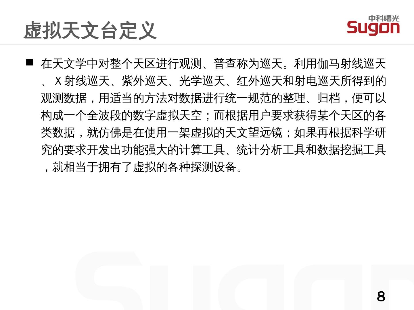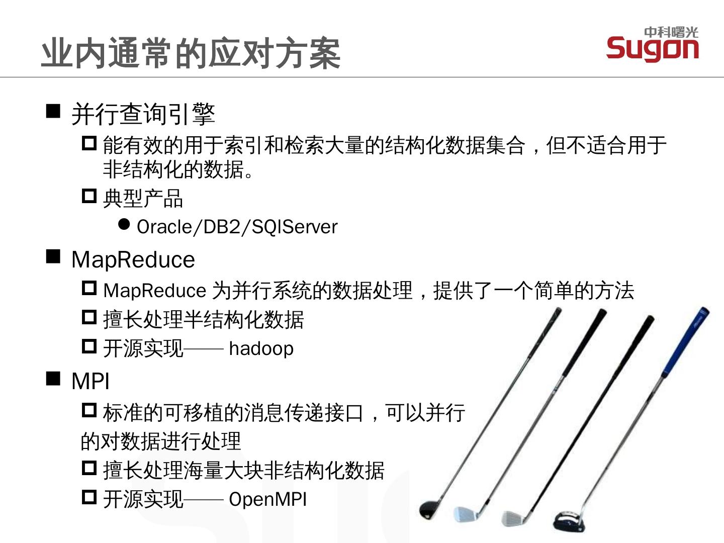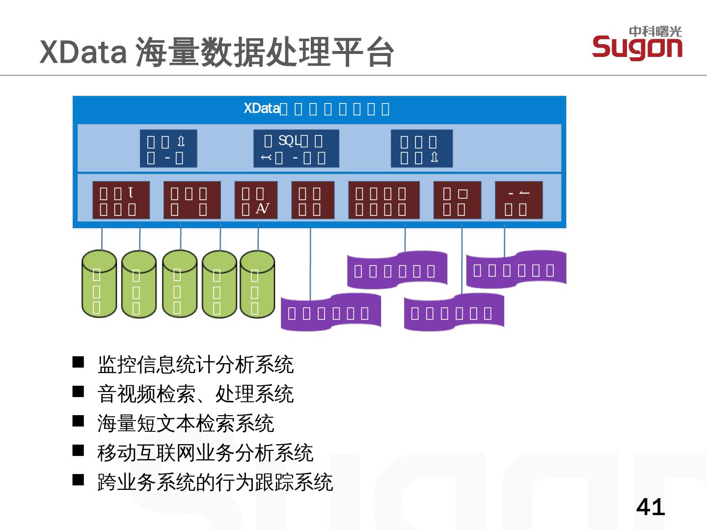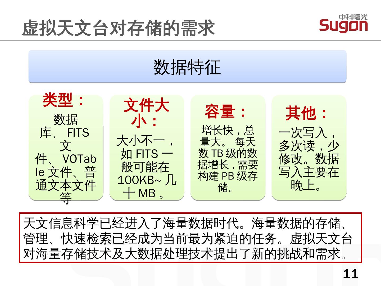 大数据技术. 曙光海量数据解决 ... 虚拟天文台对海量存储技术及大数据处理技术提出了新的挑战和需求。 12. 性能需求 .... 海量半结构化数据处理和挖掘平台. 海量文件 ...