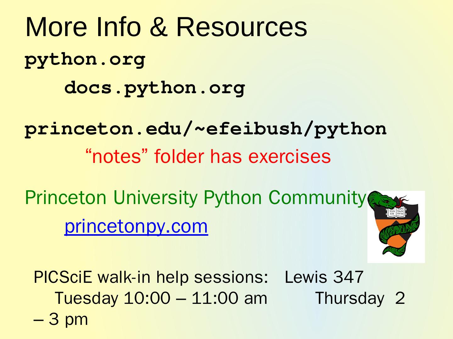 Python Programming Techniques Eliot Feibush PICSciE. Princeton Institute for. Computational Science and Engineering. Log in with your netID. Teaching ...