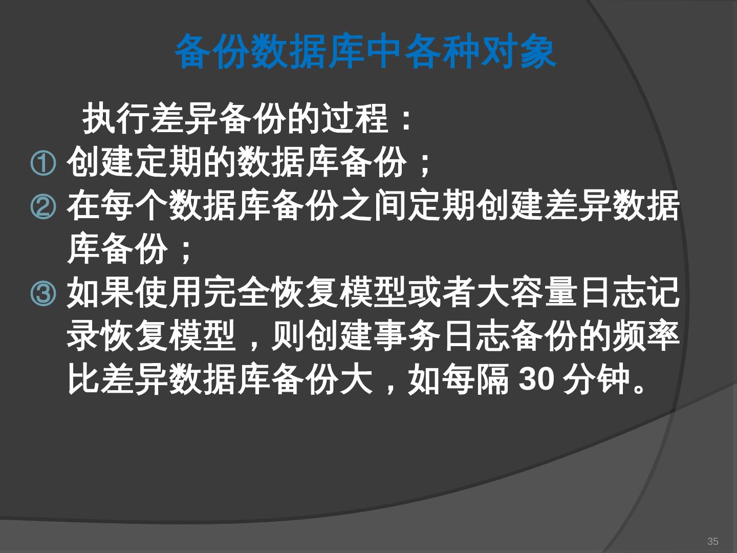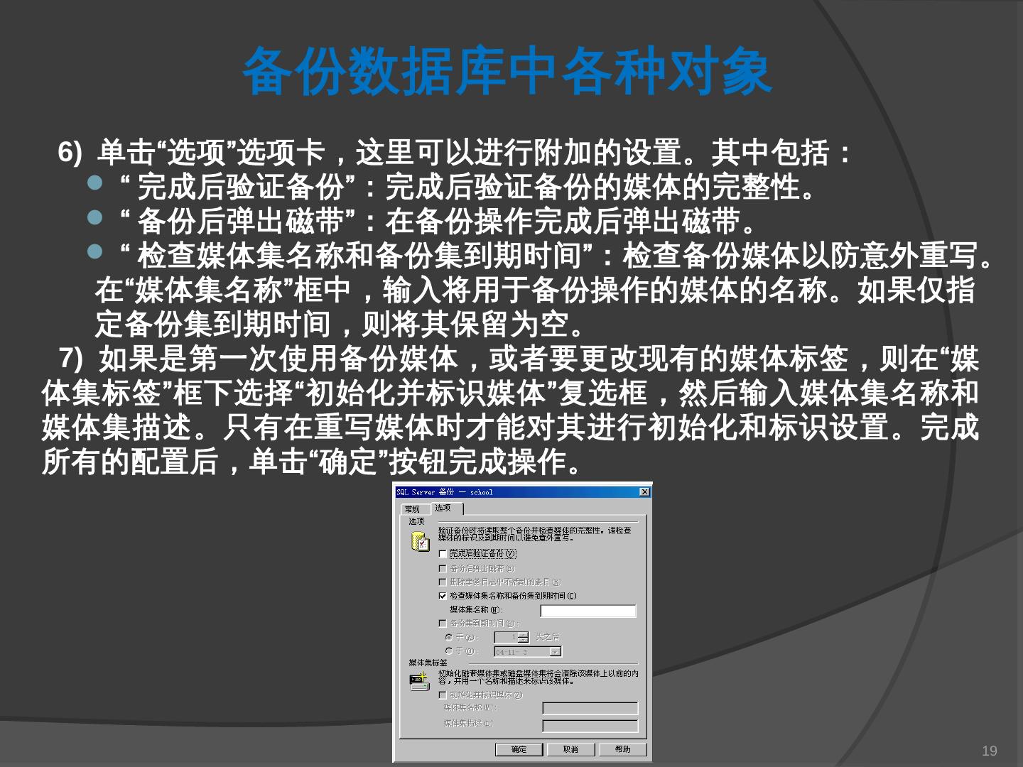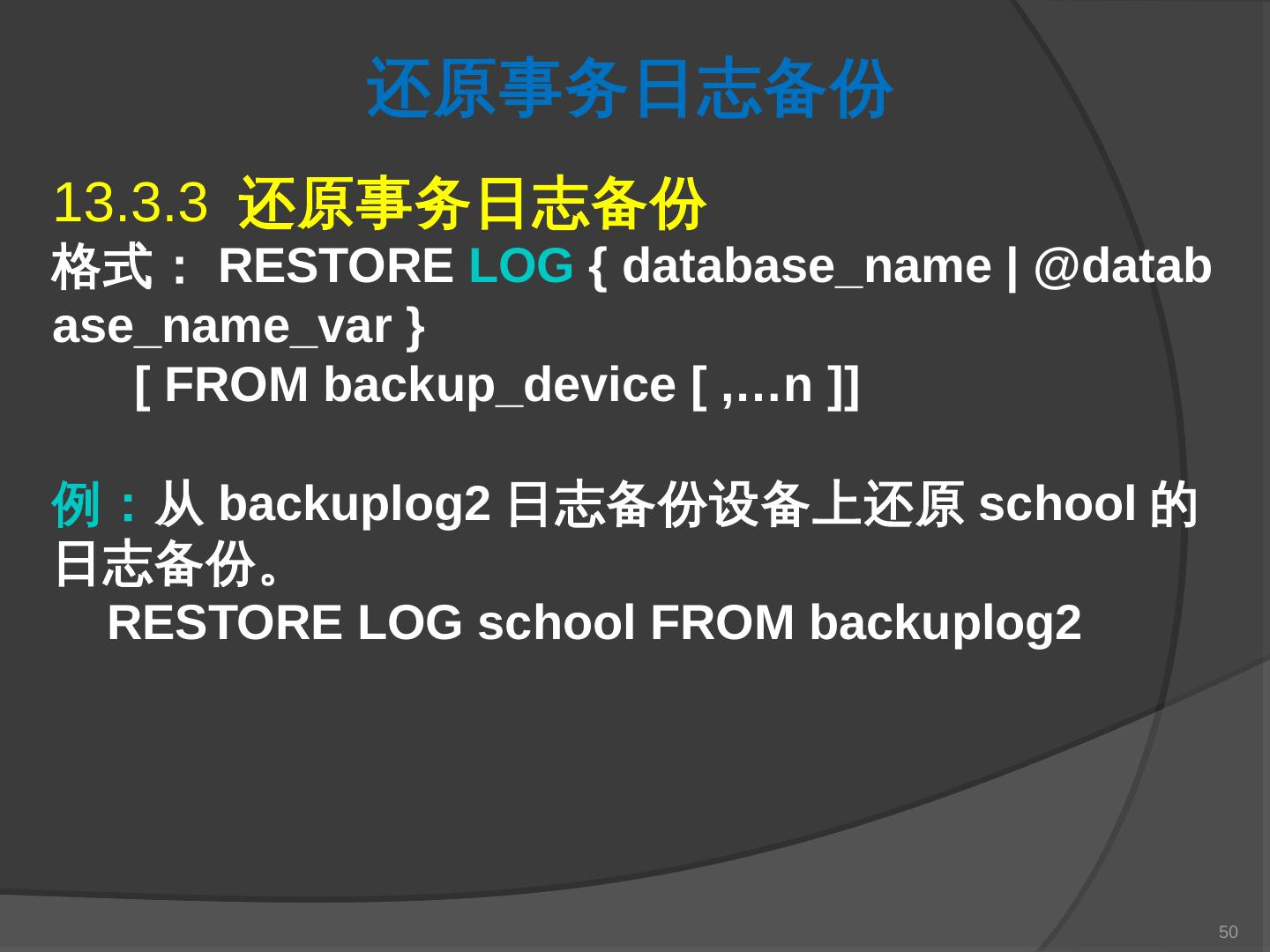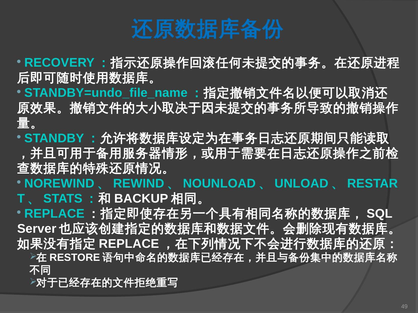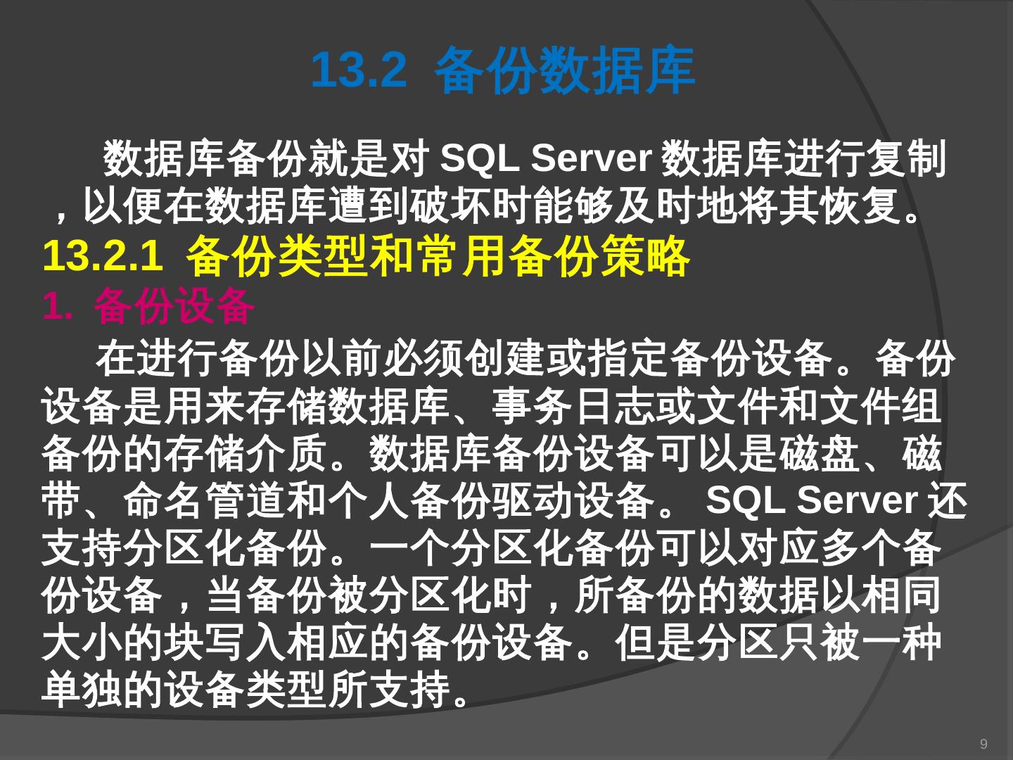 本章主要介绍SQL Server 2000中数据库的备份与还原。通过本章的学习,应掌握 ... SQL Server提供了一套功能强大、安全的数据备份和还原工具。数据的备份和还原 ...
