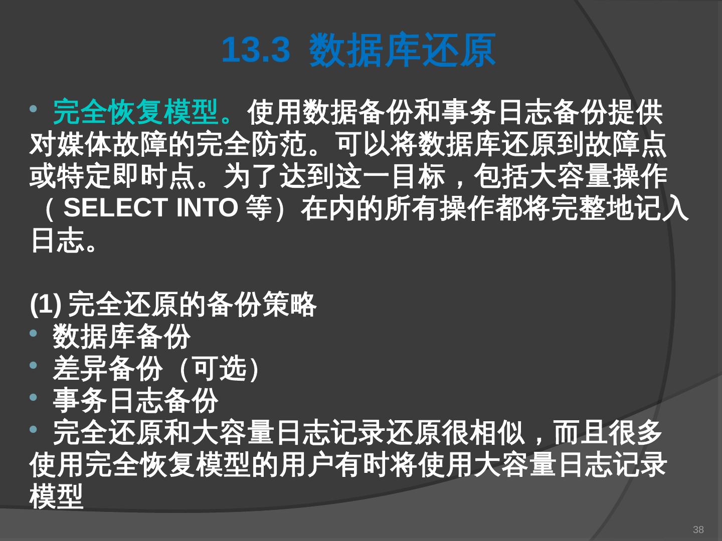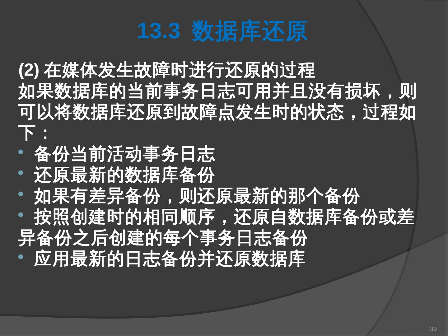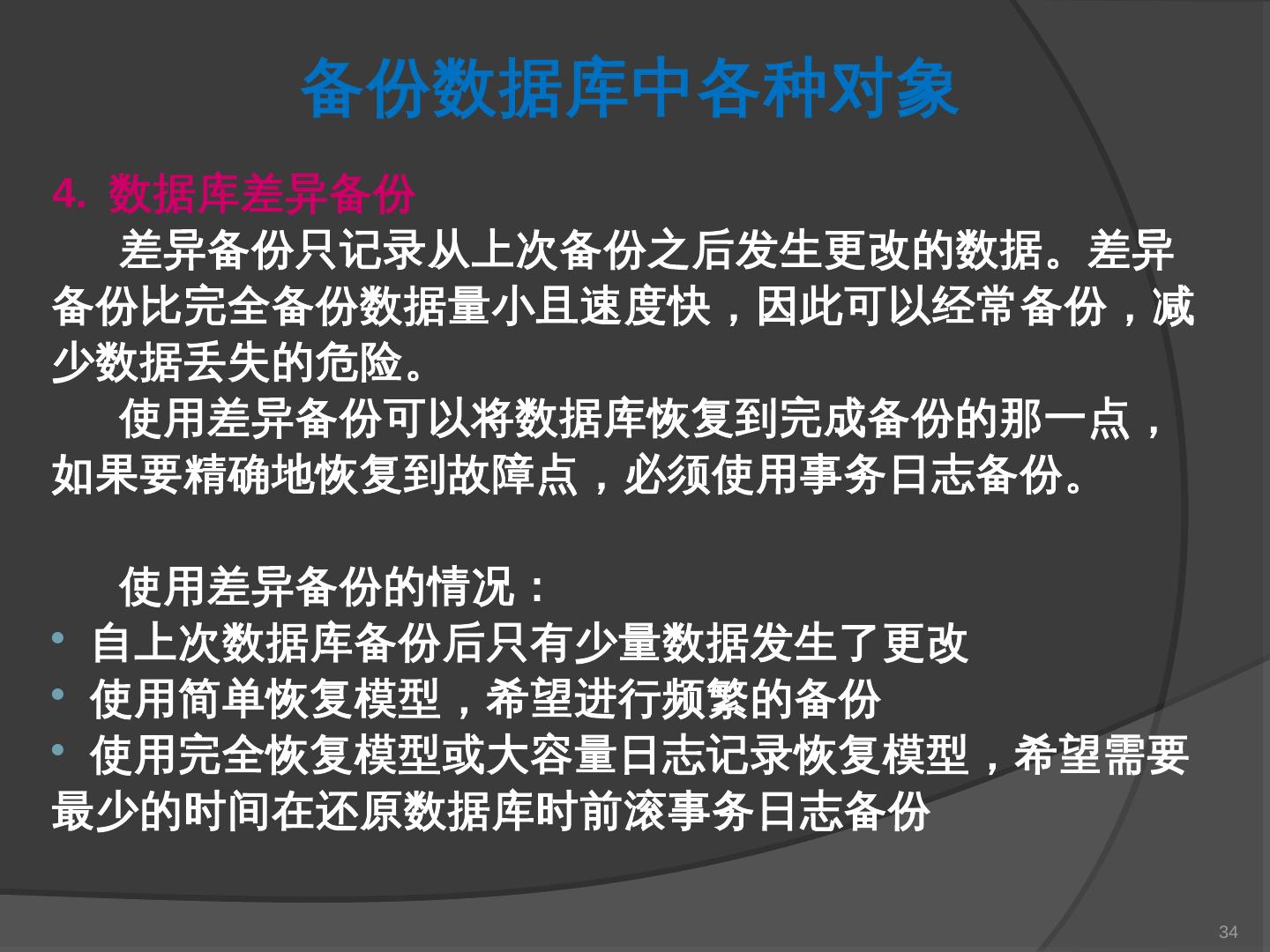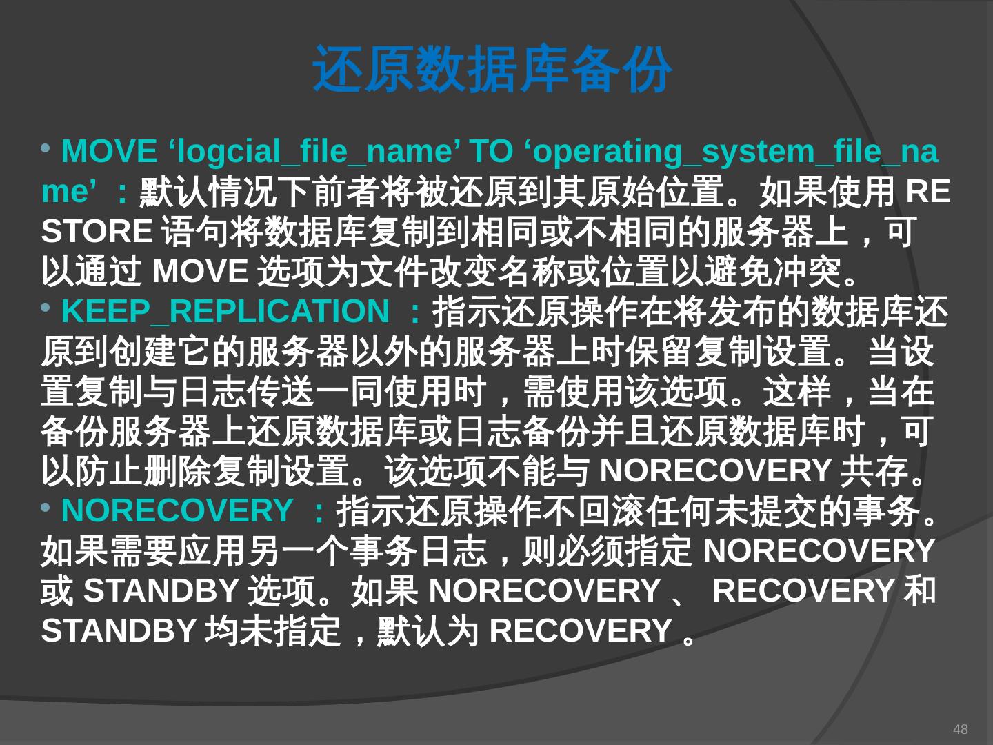 本章主要介绍SQL Server 2000中数据库的备份与还原。通过本章的学习,应掌握 ... SQL Server提供了一套功能强大、安全的数据备份和还原工具。数据的备份和还原 ...