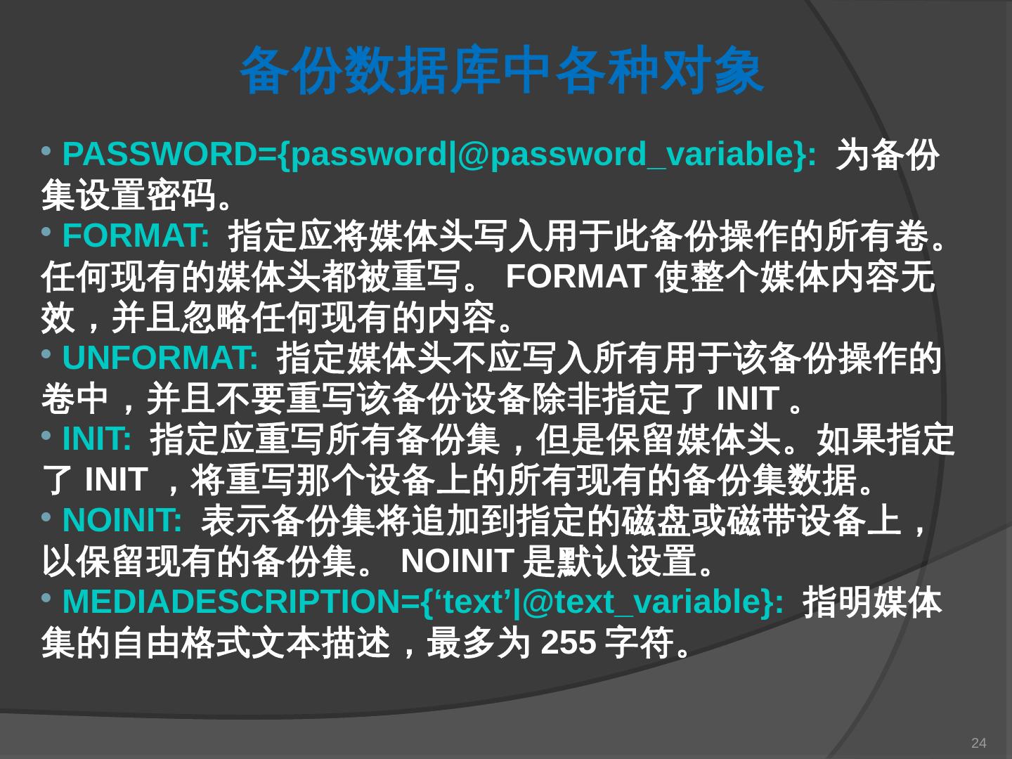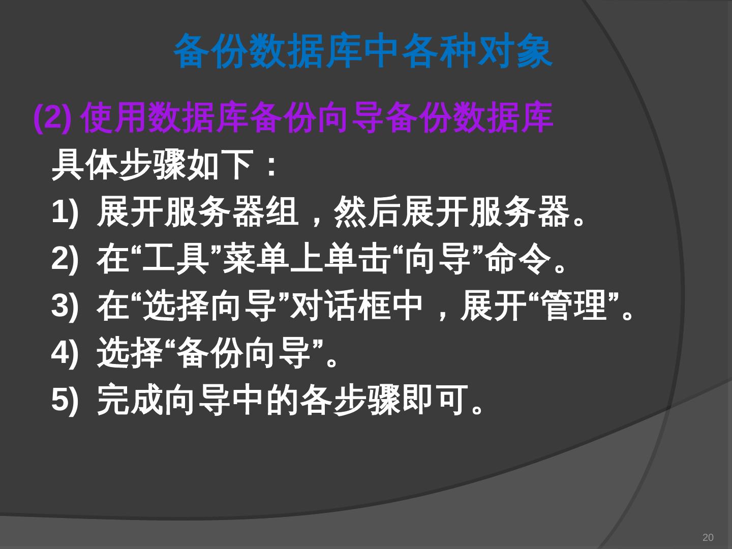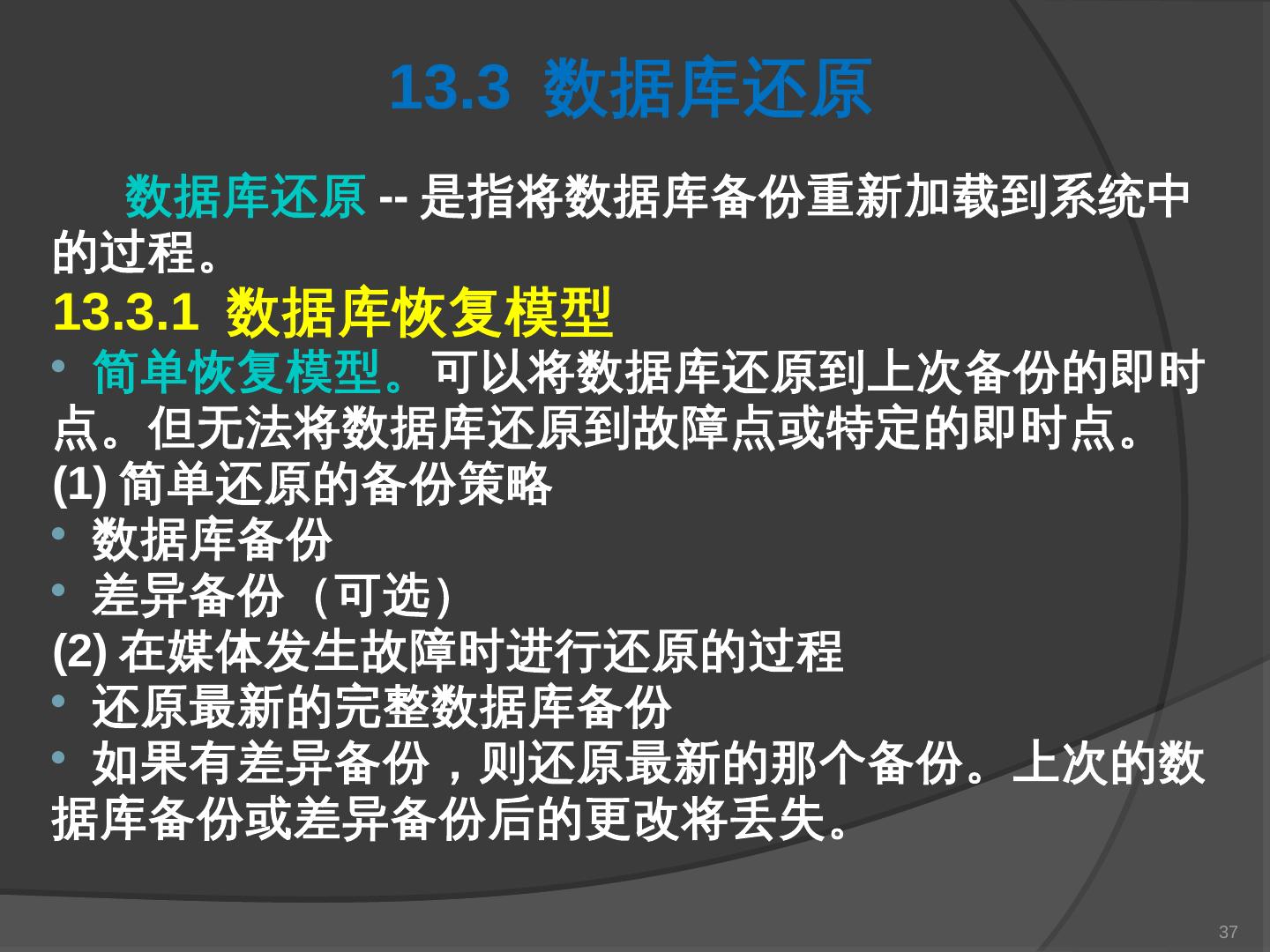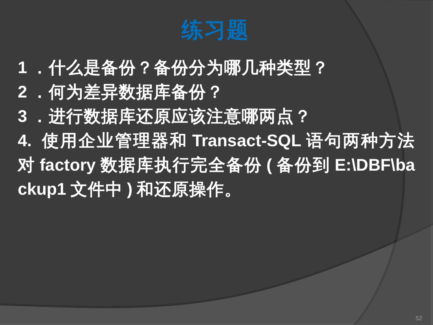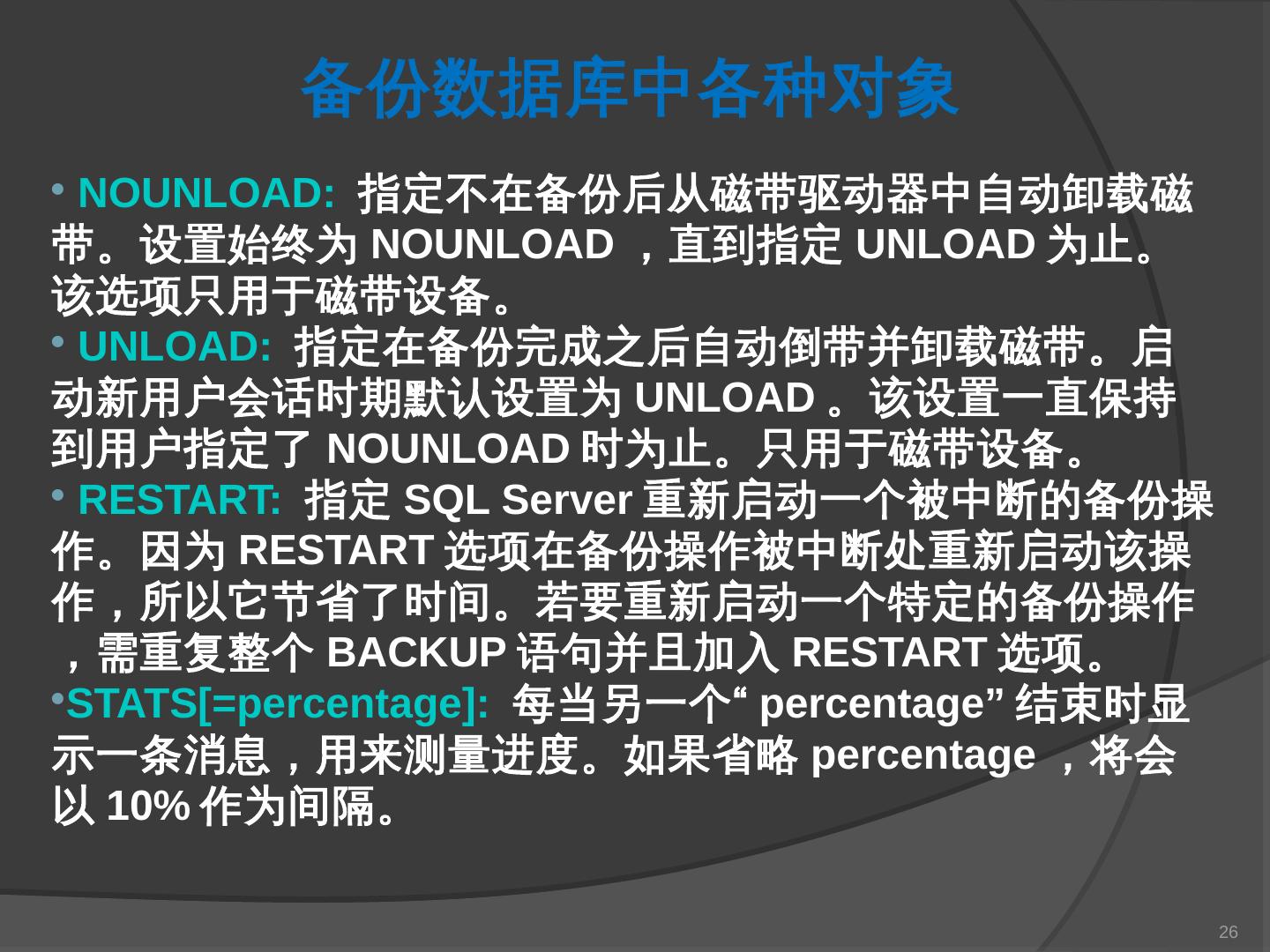 本章主要介绍SQL Server 2000中数据库的备份与还原。通过本章的学习,应掌握 ... SQL Server提供了一套功能强大、安全的数据备份和还原工具。数据的备份和还原 ...