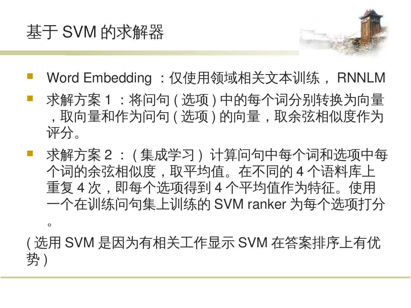 学习过程中可以使用求解器能够抽取的任意特征). 2,将每个求解器校准后的置信度作为输入,通过另一个逻辑回归分类器来判断选项对错. 其中 即各求解器的权重。
