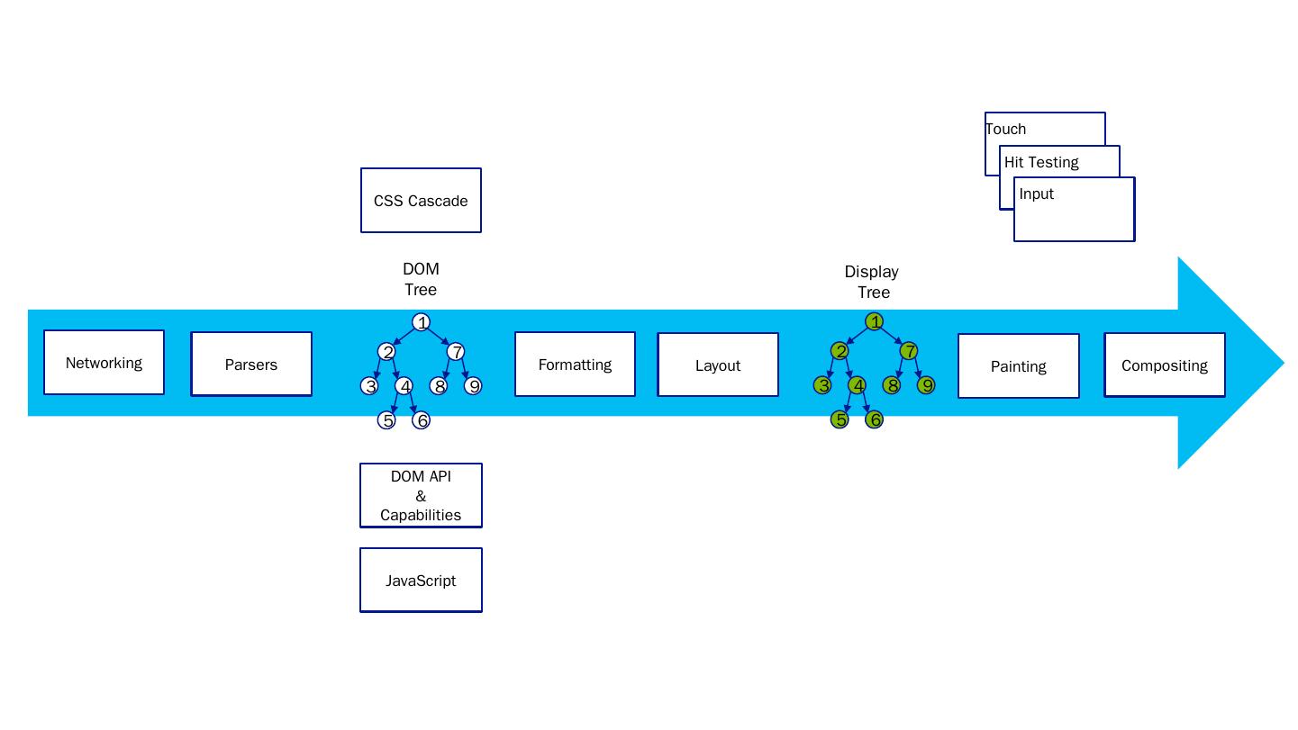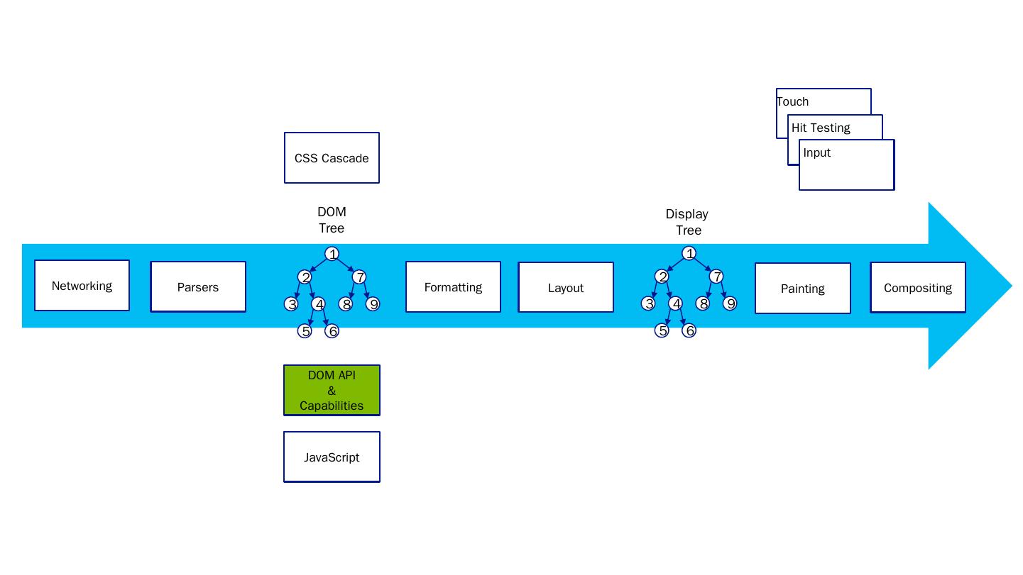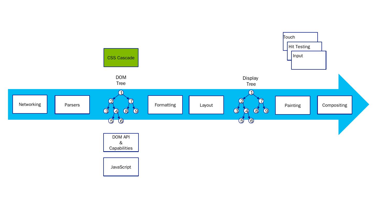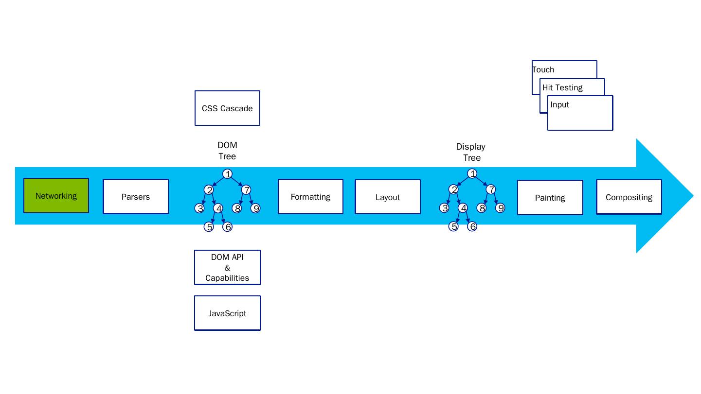 27 .Networking Parsers 1 2 7 4 3 8 9 5 6 DOM Tree Formatting Layout Painting 1 2 7 4 3 8 9 5 6 Display Tree Compositing DOM API & Capabilities JavaScript Touch Hit Testing Input CSS Cascade