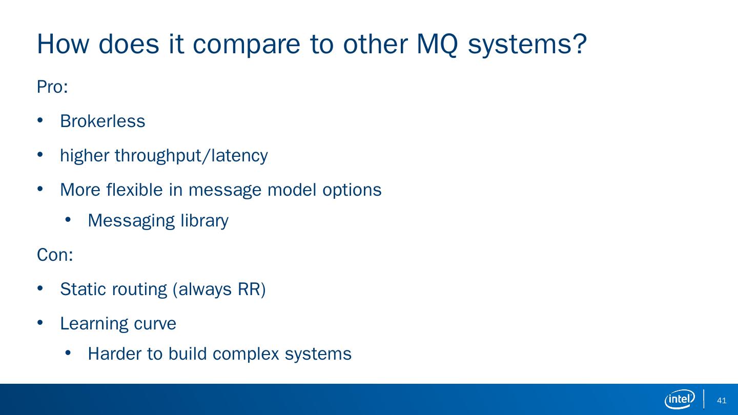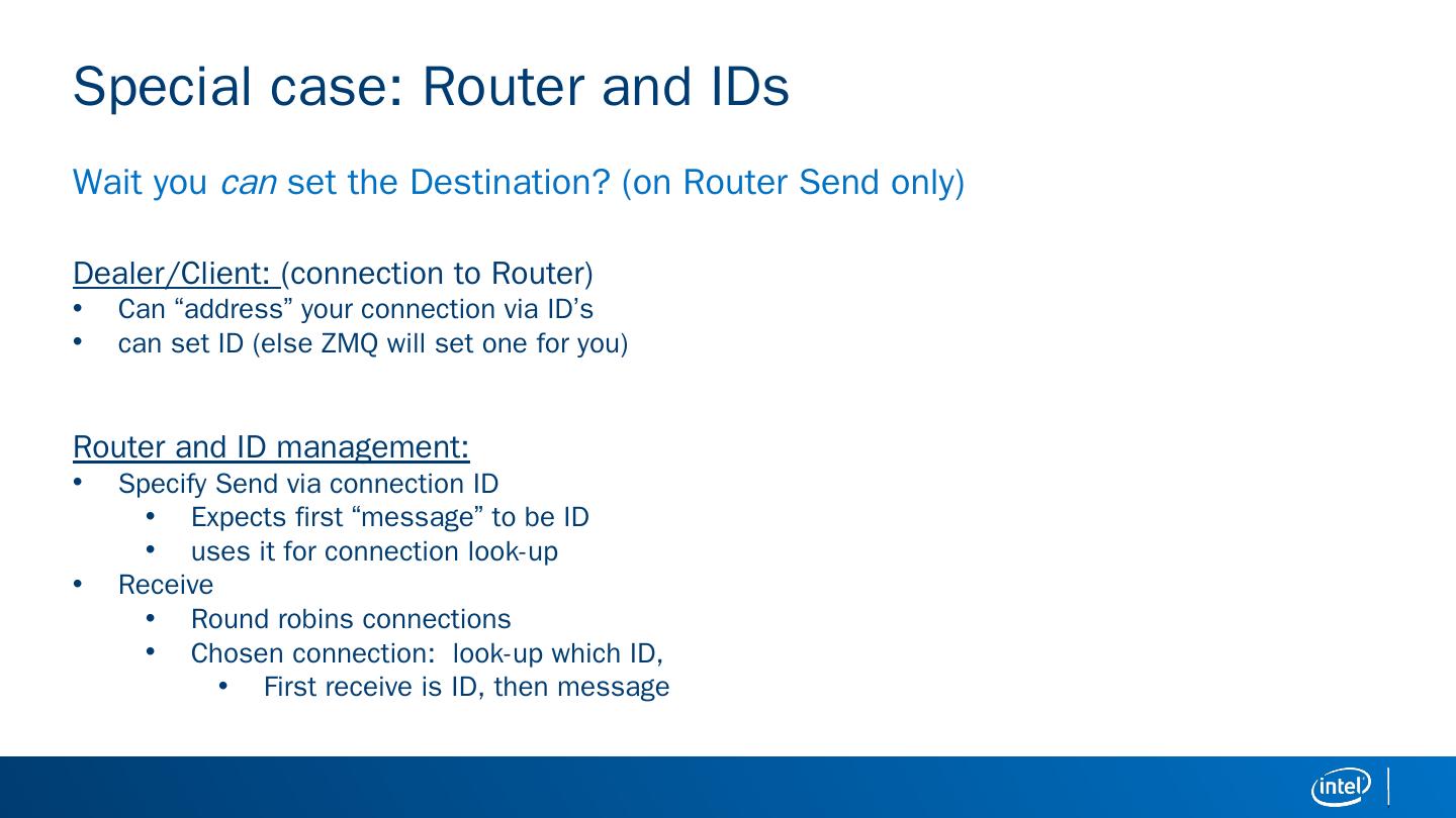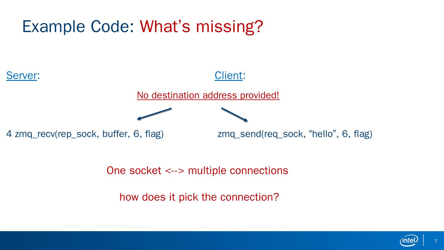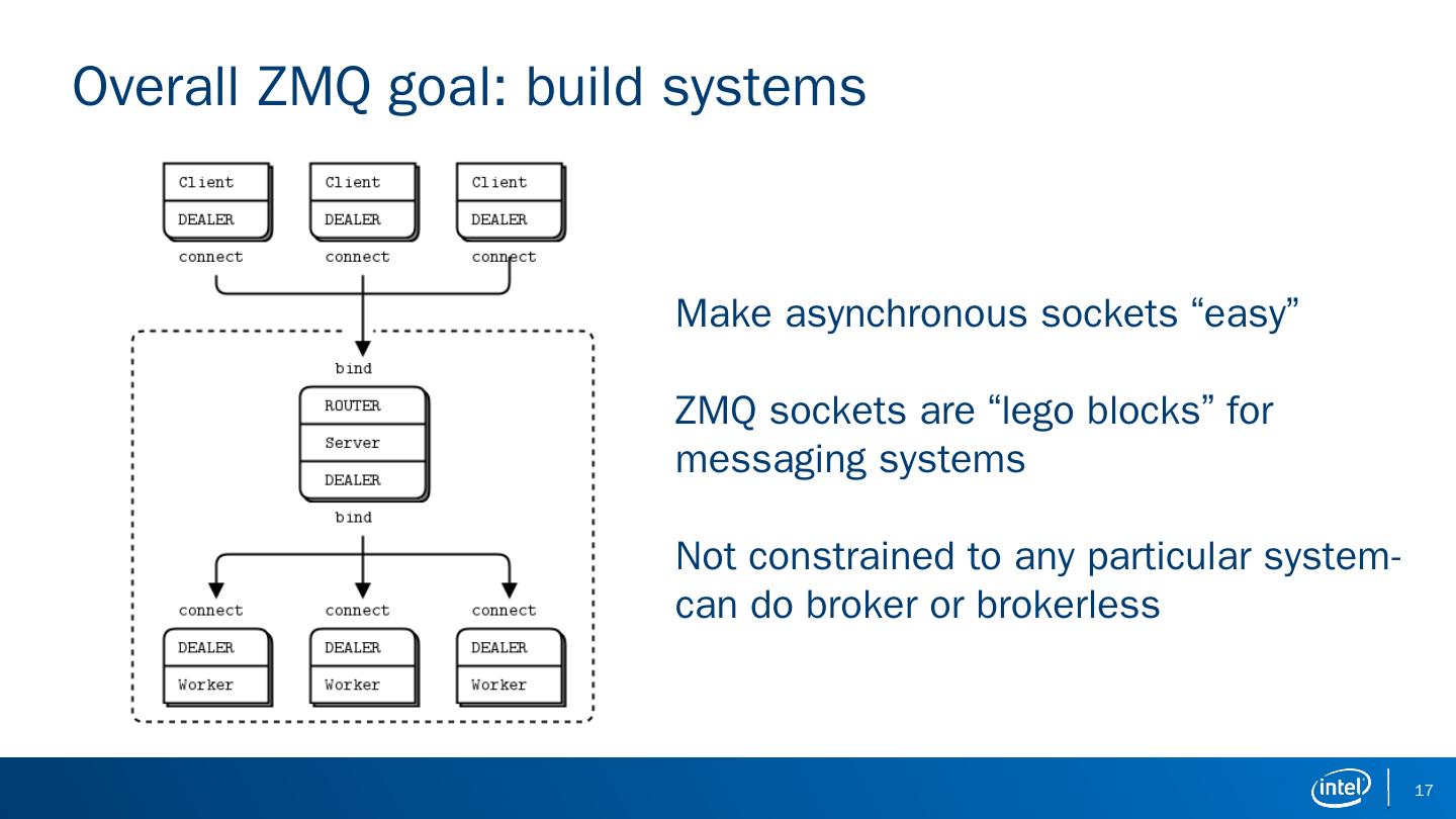 Case Study: MXNet-Pslite Model: AI Framework; ZMQ API usage. Router/Dealer socket type; Msg API (send/recv); MORE flag. Router. Dealer Dealer Dealer.