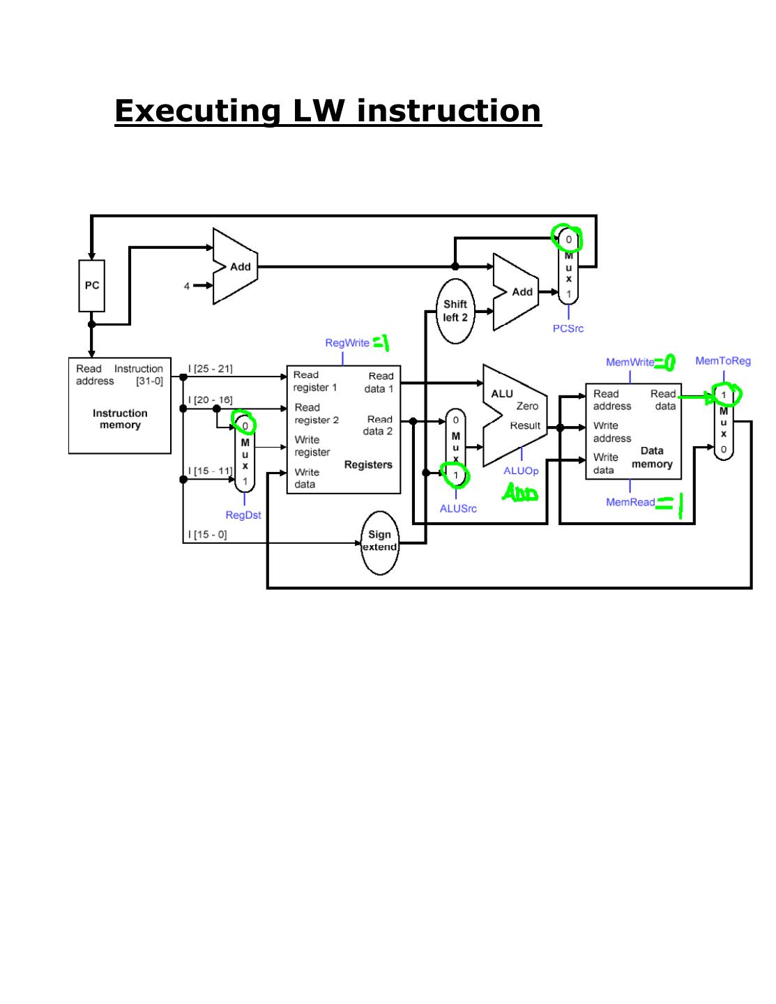 2 .The modified version of MIPS The final datapath for single cycle MIPS. Find out which paths the signal follow for lw, sw, add and beq instructions