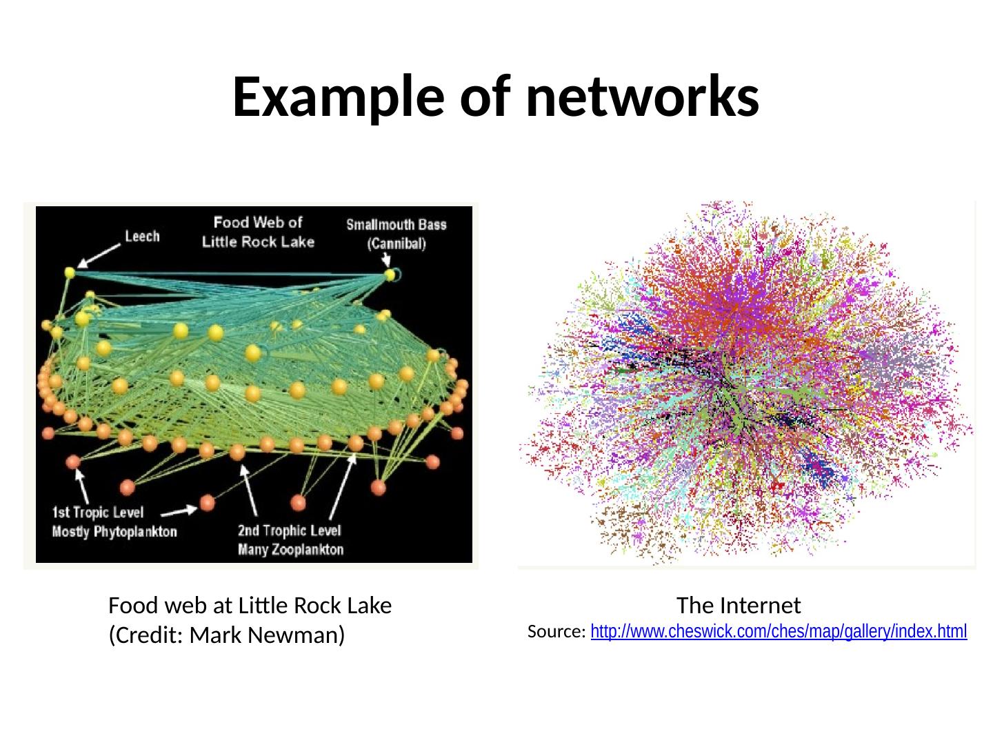 8 .Example of networks Food web at Little Rock Lake (Credit: Mark Newman) The Internet Source: http://www.cheswick.com/ches/map/gallery/index.html