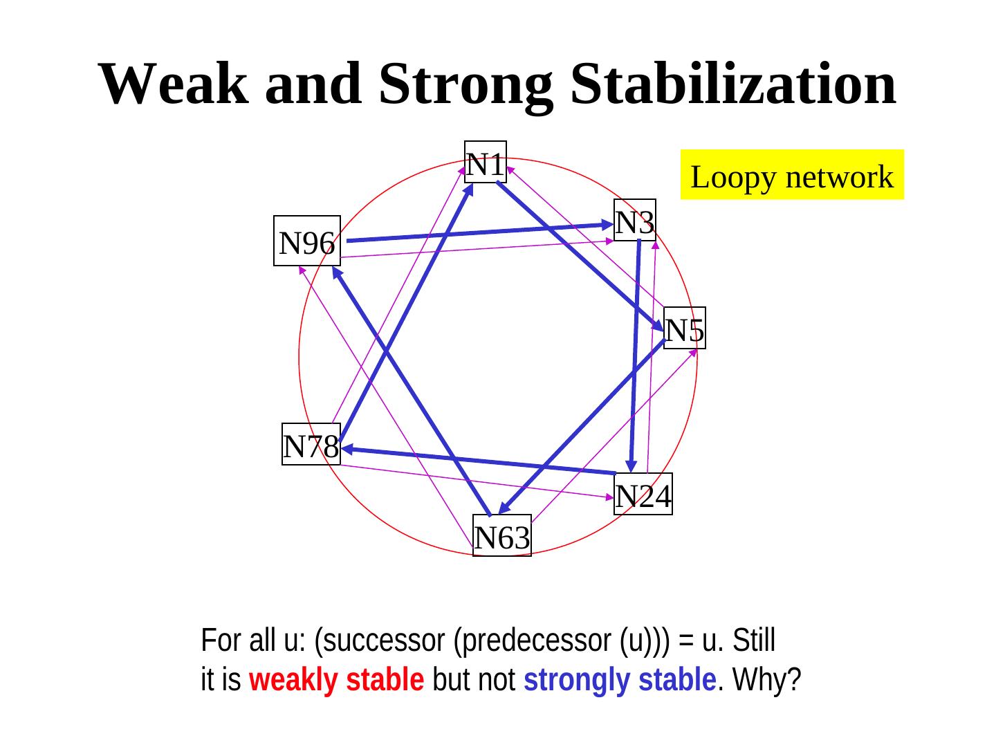 15 .Weak and Strong Stabilization N1 Loopy network N3 N96 N5 N78 N24 N63 For all u: (successor (predecessor (u))) = u. Still it is weakly stable but not strongly stable. Why?