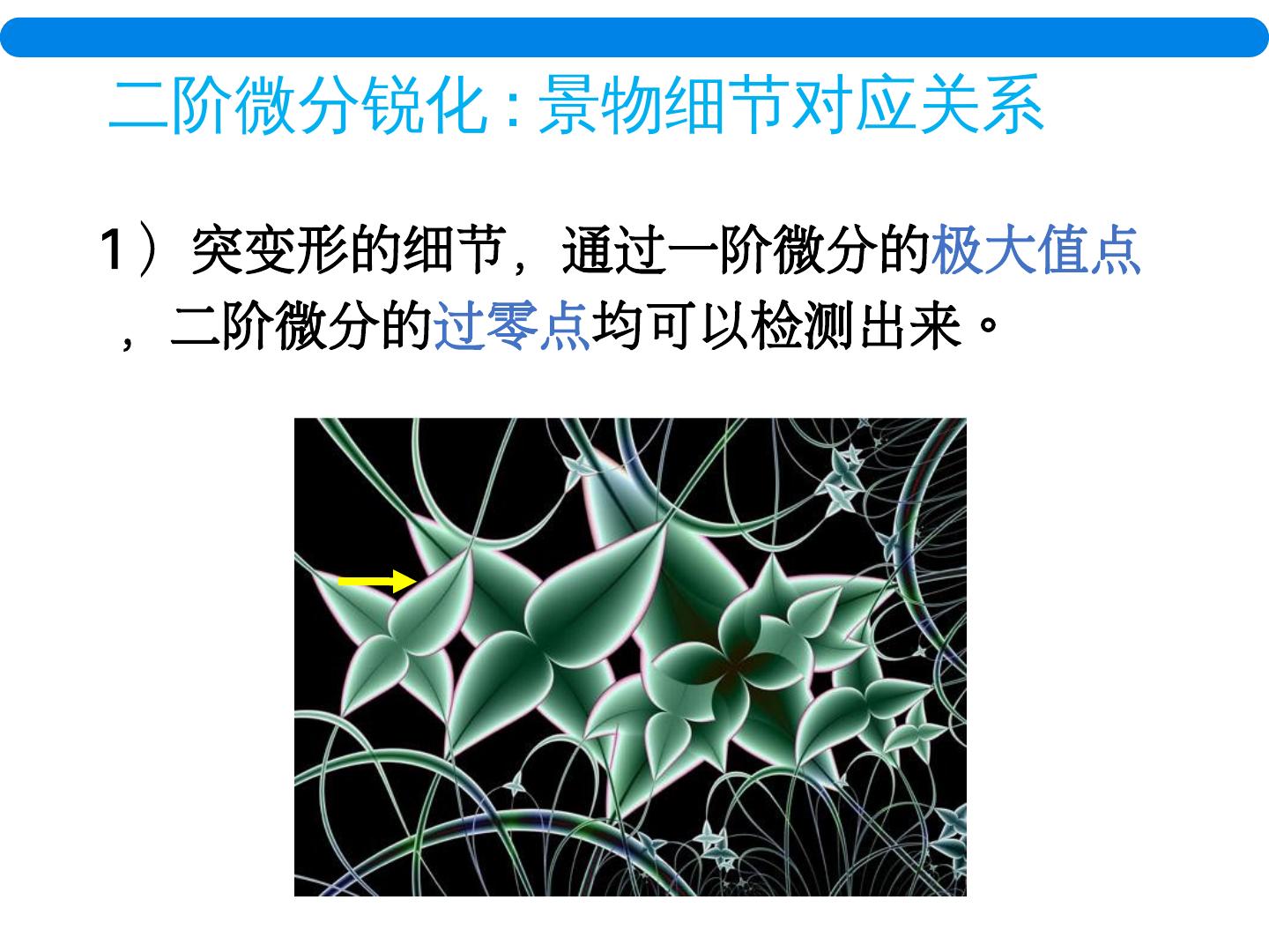 7 .图像细节的灰度变化微分特性 一阶微分曲线 灰度渐变 孤立点 细线 灰度跃变 图像细节的灰度分布特性 平坦段