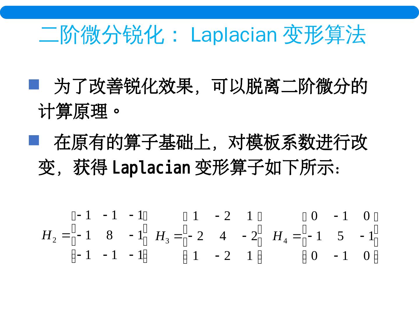 13 .水平方向的一阶锐化:基本方法 水平方向的锐化,通过可以检测出水平方向上像素值变化的 模板 来实现。