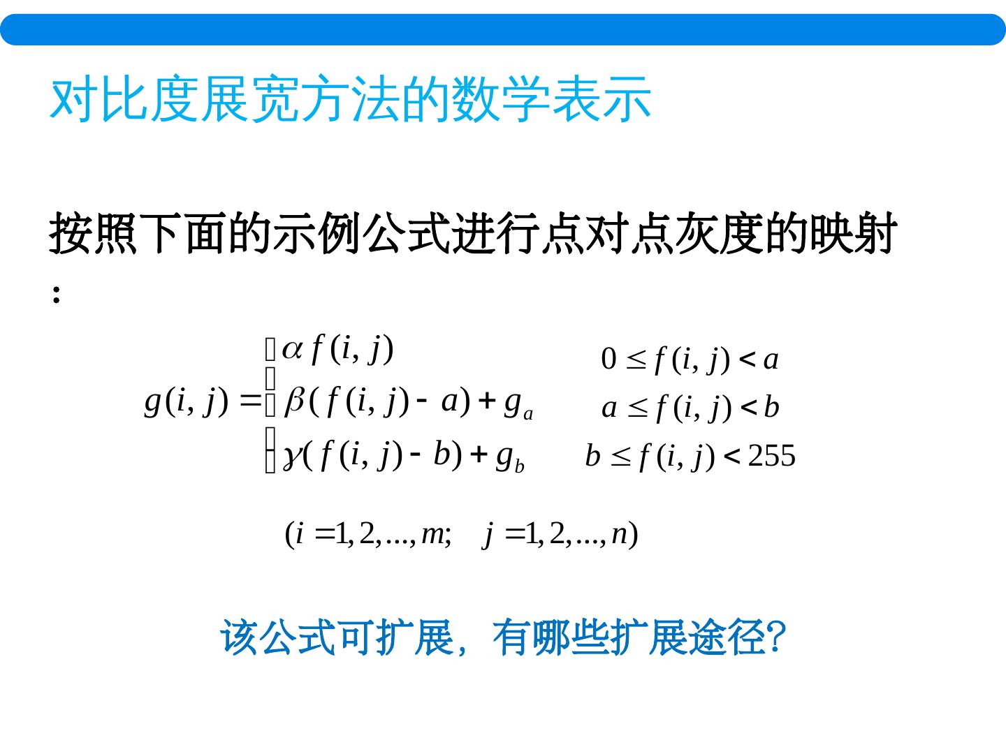 5 . 对比度展宽方法的数学表示 按照下面 的示例公式 进行点对点灰度的映射: 该公式可扩展,有哪些扩展途径?