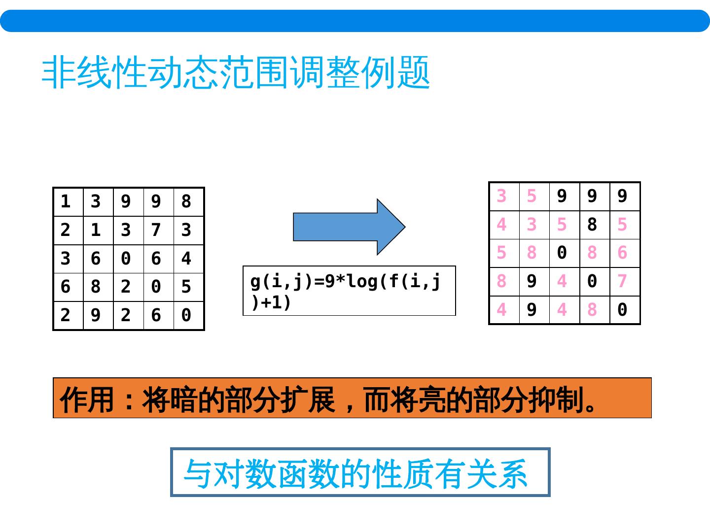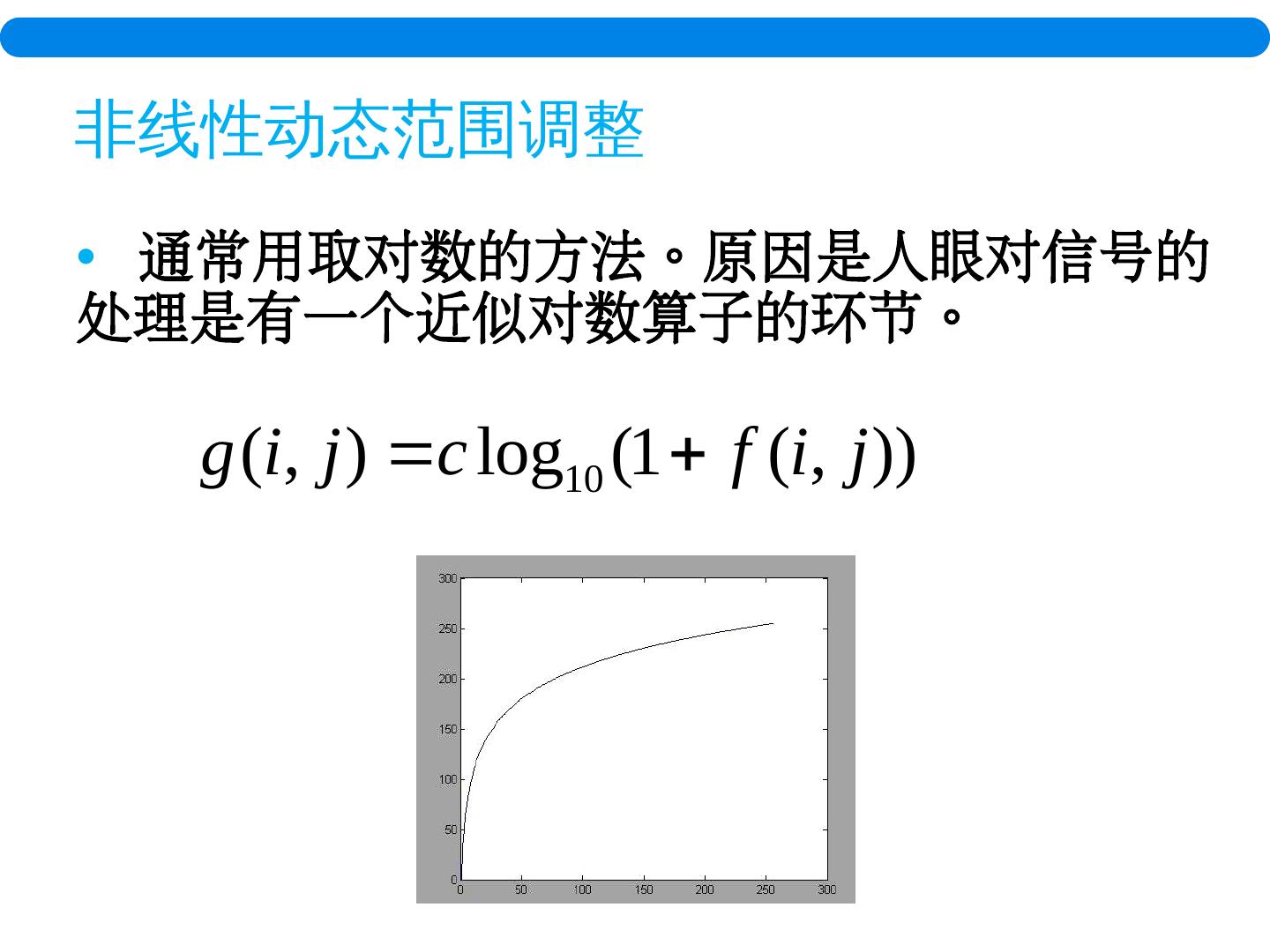 17 . 非线性动态范围调整 通常用取对数的方法。原因是人眼对信号的处理是有一个近似对数算子的环节。