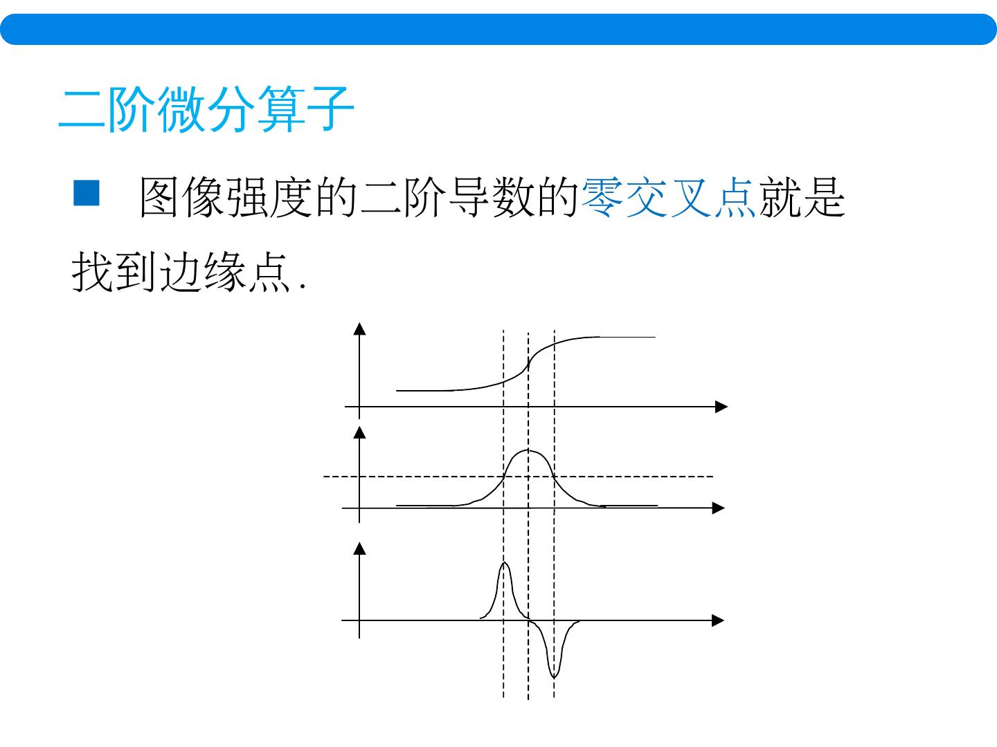 20 .二 阶微分算子 图像 强度的二阶导数的 零 交叉点 就是 找到 边缘点.