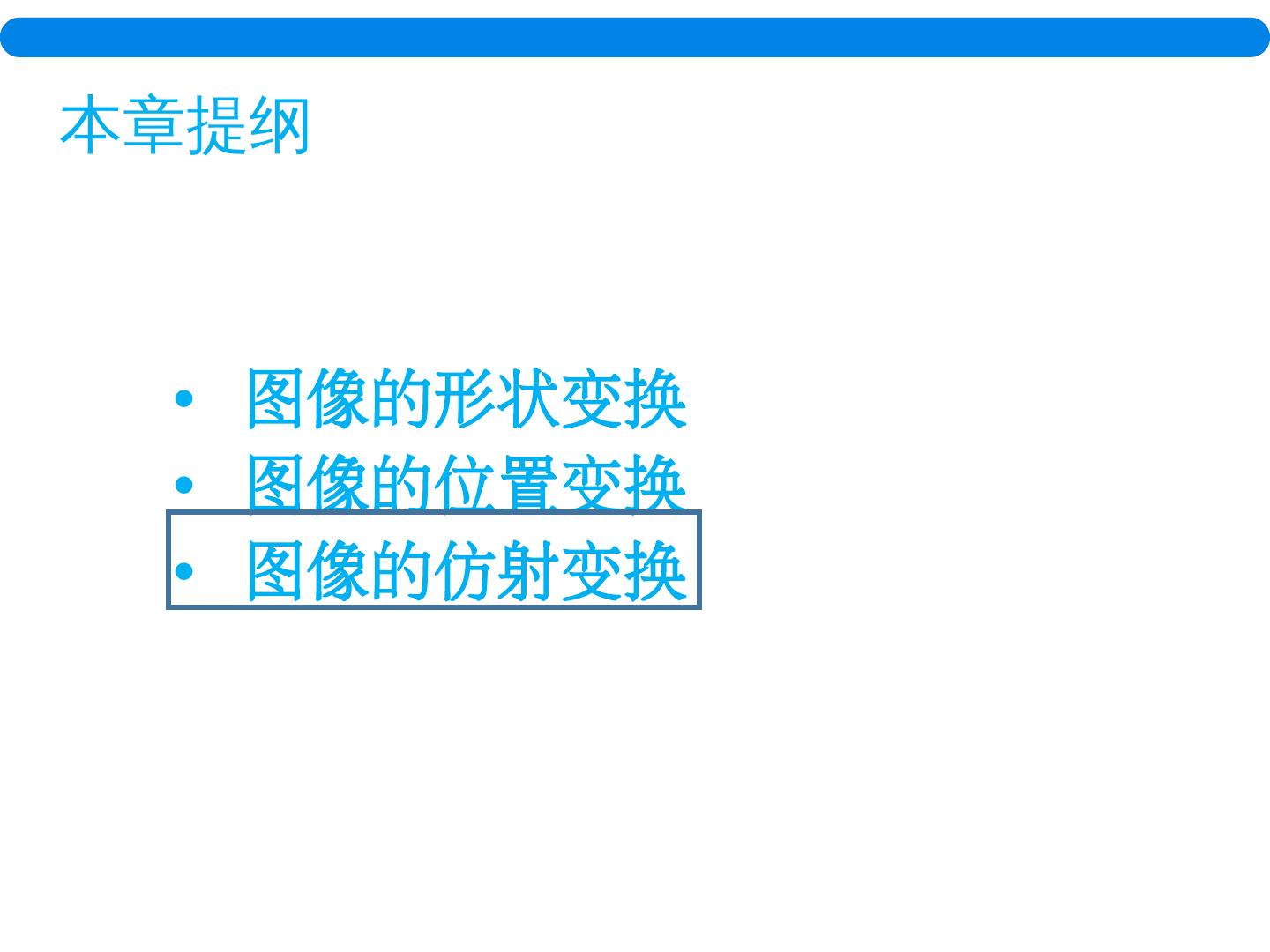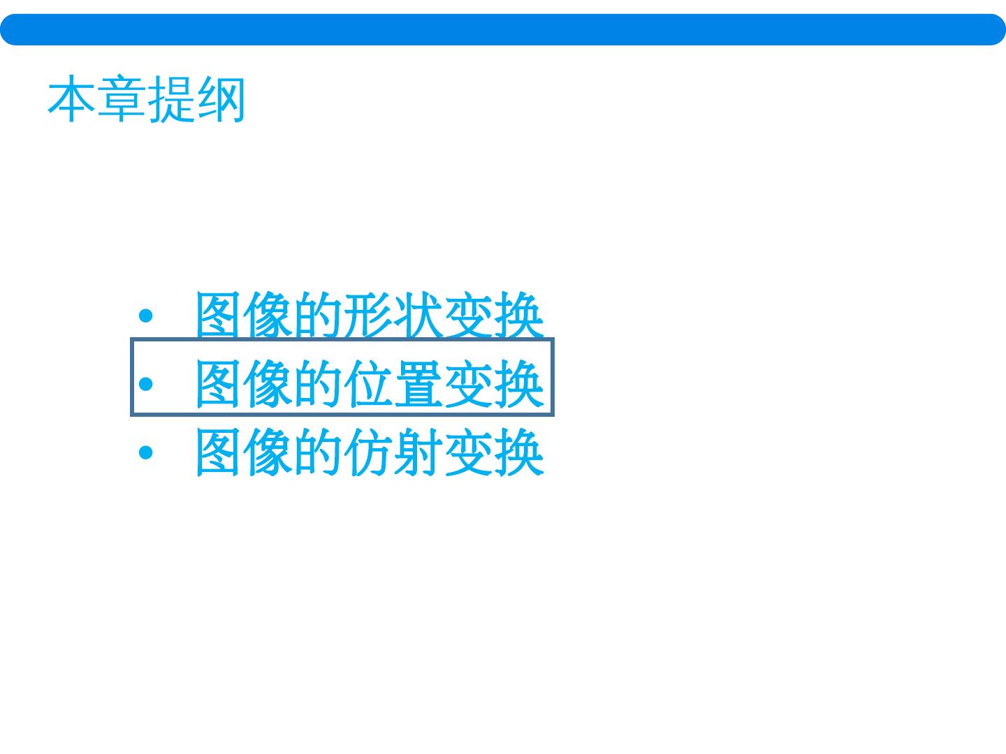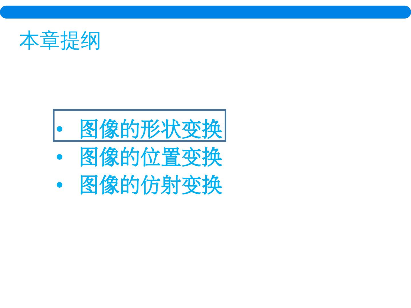 5 . 本章提纲 图像的形状变换 图像的位置变换 图像的仿射变换