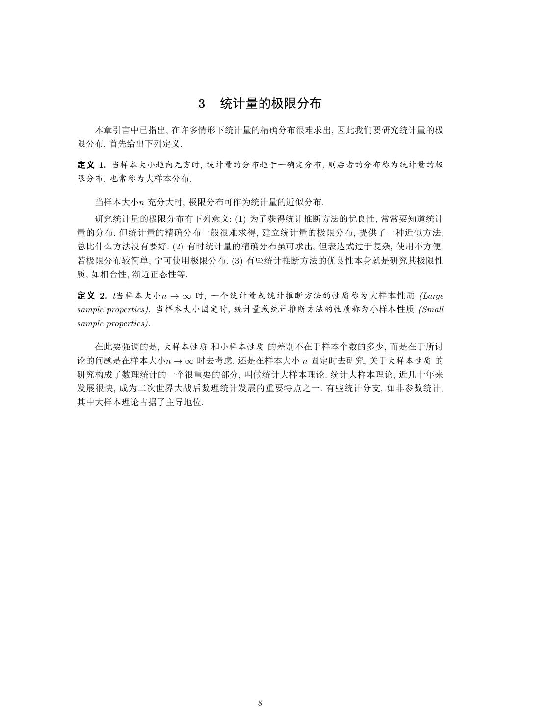 8 . 3 ÚOþ 4•©Ù ÙÚ󥮕Ñ, 3Nõœ/eÚOþ °(©ÙéJ¦Ñ, Ïd·‚‡ïÄÚOþ 4 •©Ù. Äk‰Ñe ½Â. ½  1. Œ ª•áž, ÚOþ ©Ùªu˜(½©Ù, K ö ©Ù¡•ÚOþ 4 •©Ù. •~¡•Œ ©Ù. Œ n ¿©Œž, 4•©ÙŒŠ•ÚOþ Cq©Ù. ïÄÚOþ 4•©Ùke ¿Â: (1) • ¼ ÚOíä•{ `û5, ~~‡• ÚO þ ©Ù. ÚOþ °(©Ù˜„éJ¦ , ïáÚOþ 4•©Ù, Jø ˜«Cq•{, o'Ÿo•{vk‡Ð. (2) kžÚOþ °(©Ù•Œ¦Ñ, LˆªLuE,, ¦^Ø•B. e4•©Ù {ü, wŒ¦^4•©Ù. (3) k ÚOíä•{ `û5 Ò´ïÄÙ4•5 Ÿ, XƒÜ5, ìC 5 . ½  2. t Œ n → ∞ ž, ˜‡ÚOþ½ÚOíä•{ 5Ÿ¡•Œ 5Ÿ (Large sample properties). Œ ½ž, ÚOþ½ÚOíä•{ 5Ÿ¡• 5Ÿ (Small sample properties). 3d‡rN ´, Œ 5Ÿ Ú 5Ÿ OØ3u ‡ê õ , ´3u¤? Ø ¯K´3 Œ n→∞ž •Ä, „´3 Œ n ½ž ïÄ, 'uŒ 5Ÿ ïÄ ¤ ênÚO ˜‡é-‡ Ü©, ‰ÚOŒ nØ. ÚOŒ nØ, CA›c5 uÐé¯, ¤• g-.ŒÔ ênÚOuÐ -‡A:ƒ˜. k ÚO©|, XšëêÚO, Ù¥Œ nØÓâ Ì / . 8