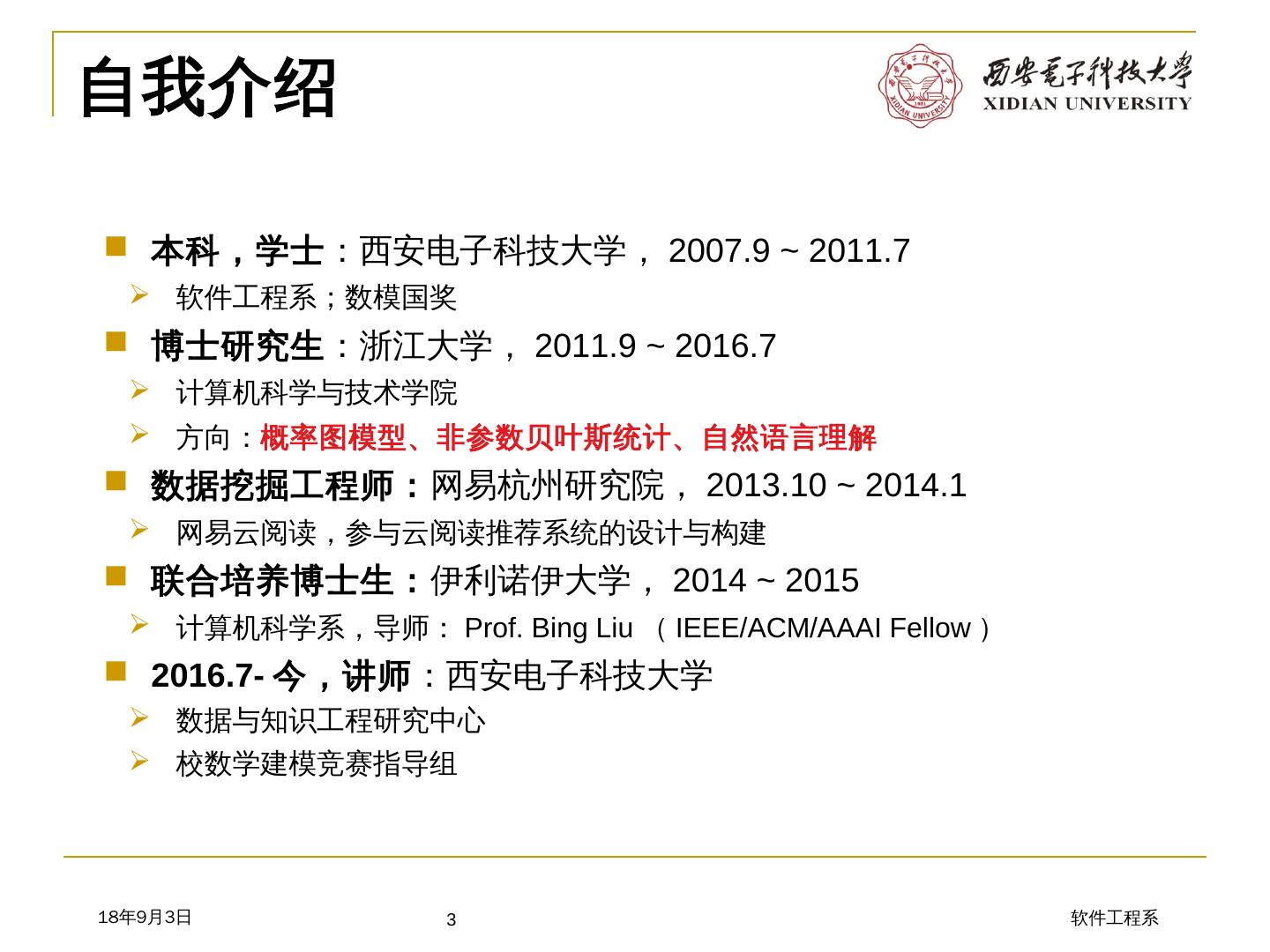 网易云阅读,参与云阅读推荐系统的设计与构建. 联合培养博士生:伊利诺伊大学,2014 ~ 2015. 计算机科学系,导师:Prof. Bing Liu(IEEE/ACM/AAAI ...