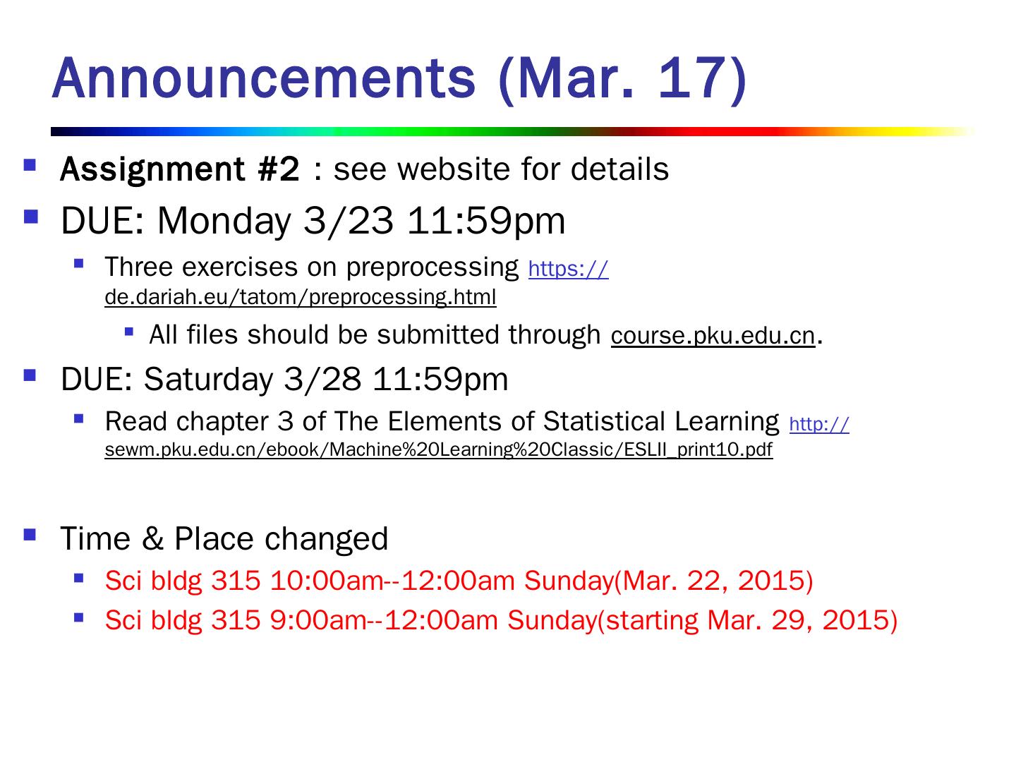 DUE: Saturday 3/28 11:59pm. Read chapter 3 of The Elements of Statistical Learning ... CountVectorizer class from scikit-learn package. scikit-learn (Machine ...