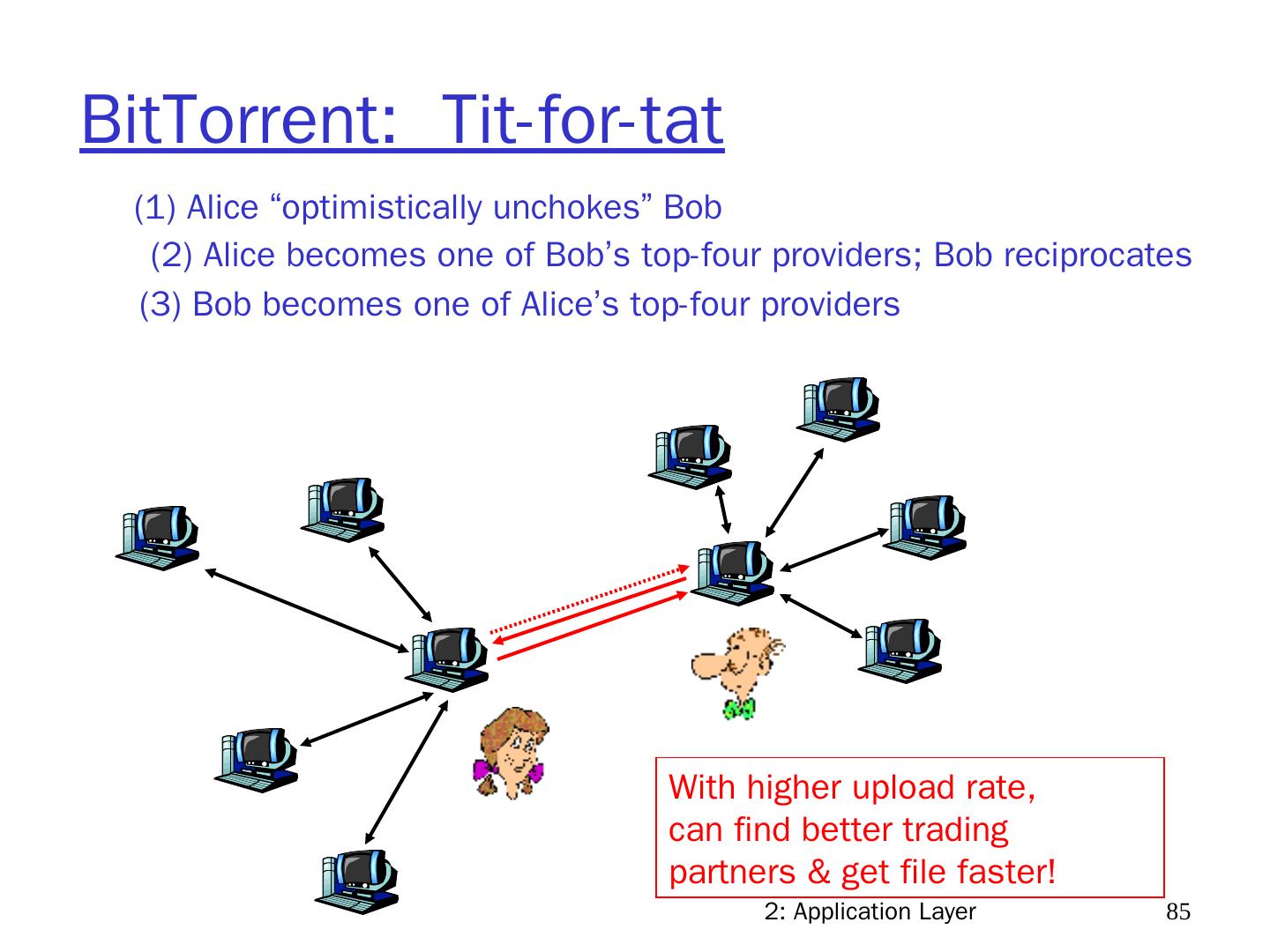 11 .2: Application Layer 11 Pure P2P architecture no always-on server arbitrary end systems directly communicate peers are intermittently connected and change IP addresses Highly scalable but difficult to manage peer-peer