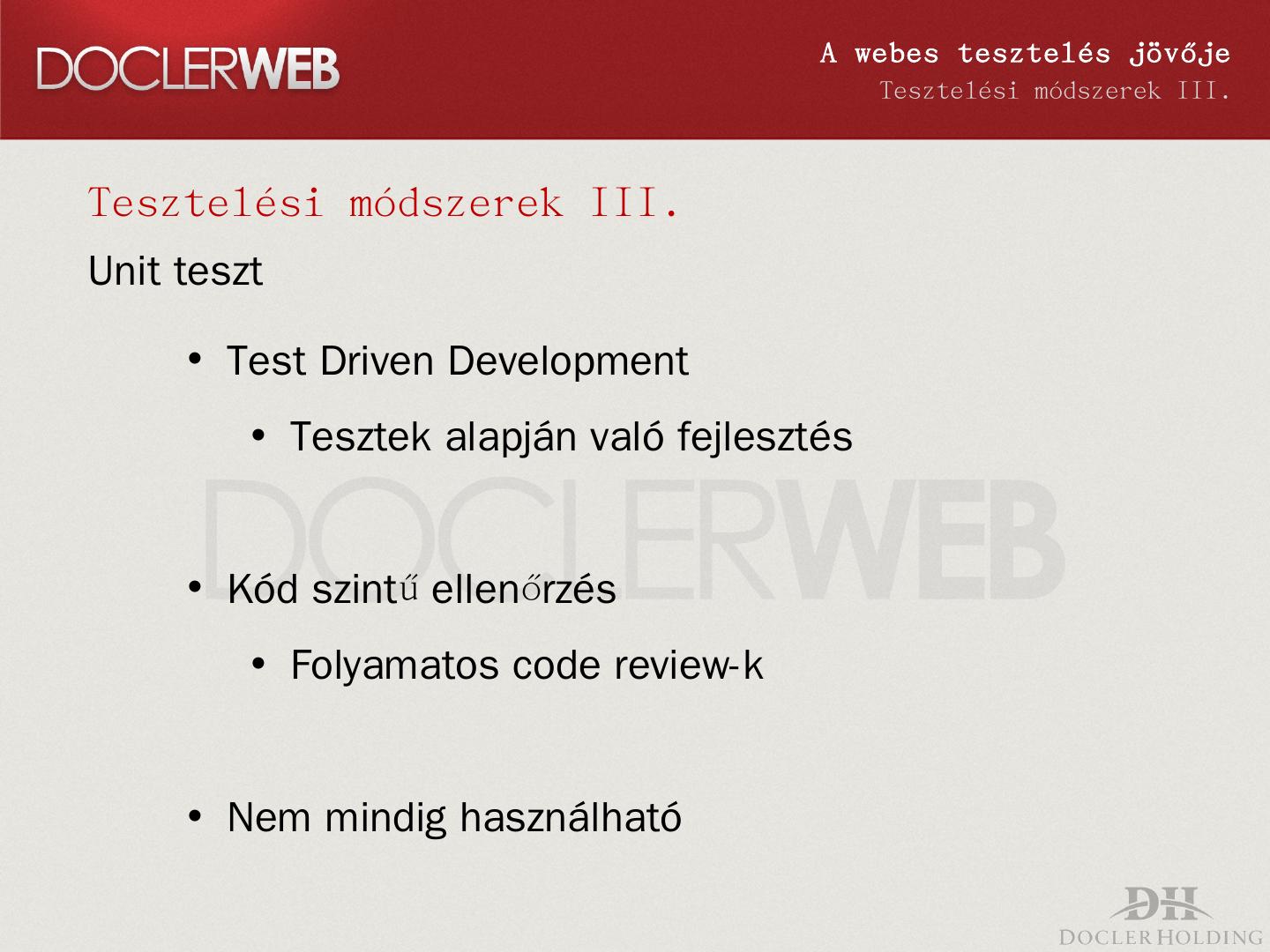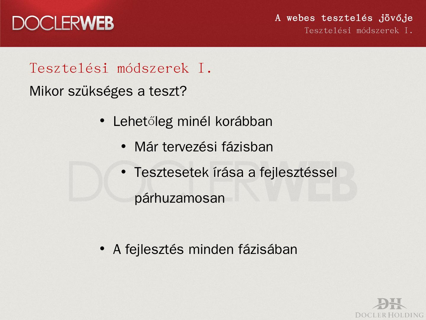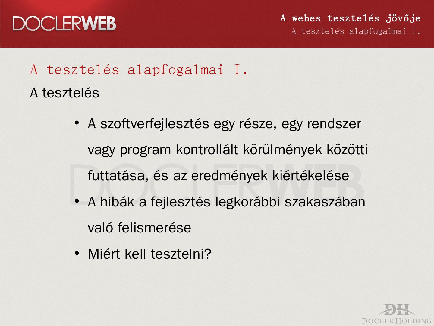 Selenium termékcsalád. Selenium IDE; Selenium RC; Selenium WebDriver. A webes tesztelés jövője. Az automatizált tesztelés II. Az automatizált tesztelés III.