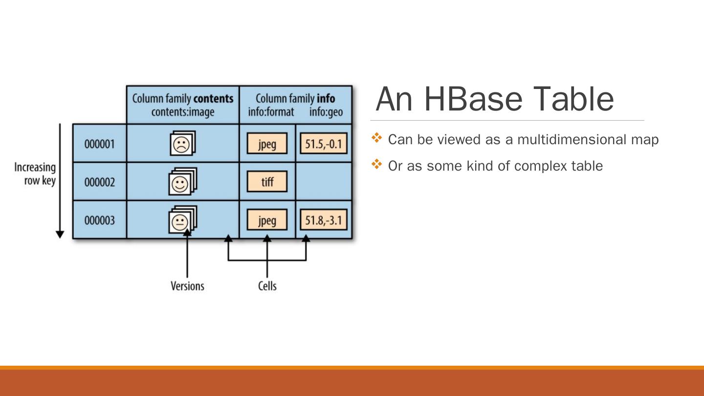 TL;DR: HBase is a distributed column(-family)-oriented database built on top ... “Apache HBase™ is the Hadoop database, a distributed, scalable, big data store.