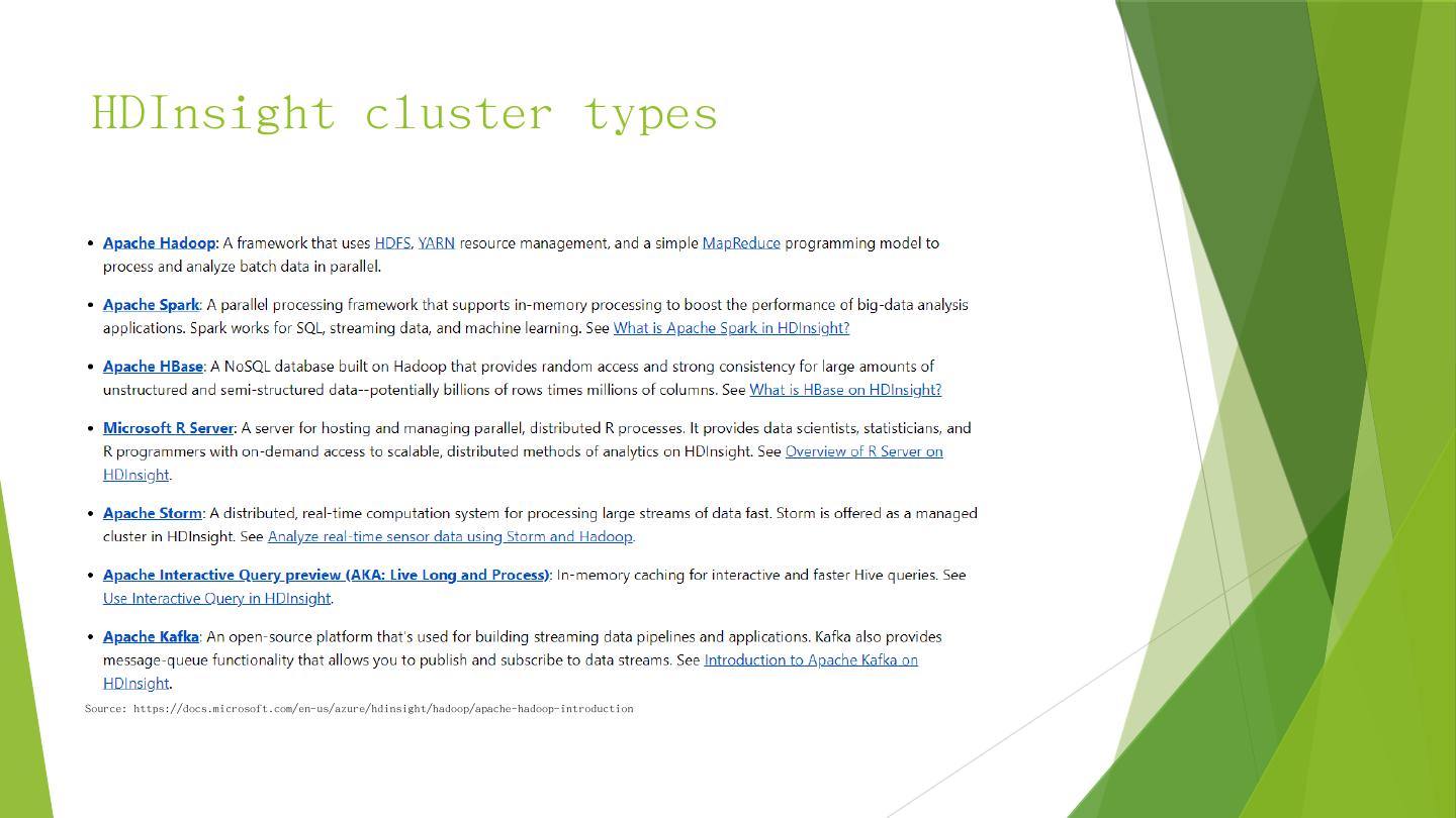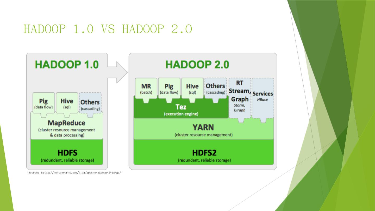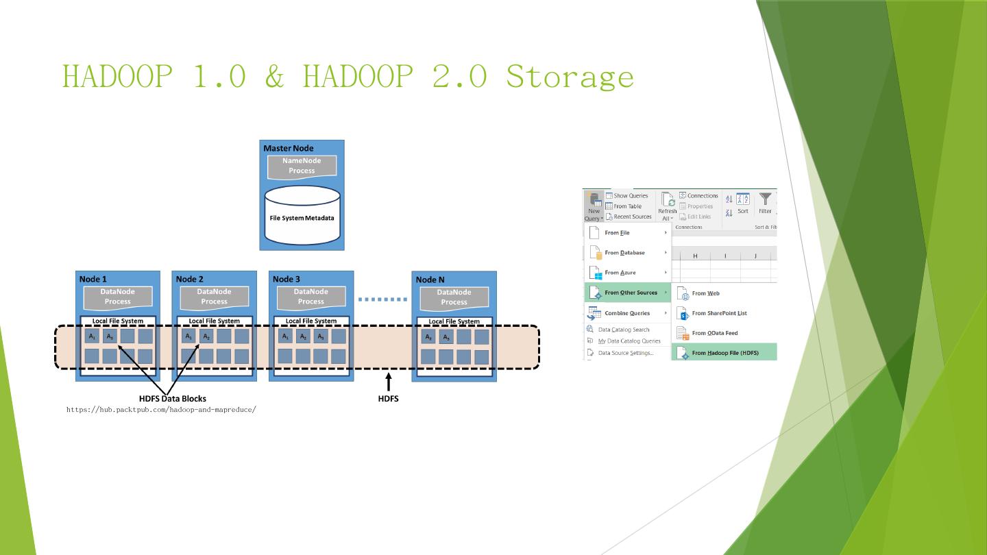 Source: https://hortonworks.com/blog/apache-hadoop-2-is-ga/ ... Text/CSV Files; JSON Records; Avro Files; Sequence Files; RC Files; ORC Files; Parquet Files.