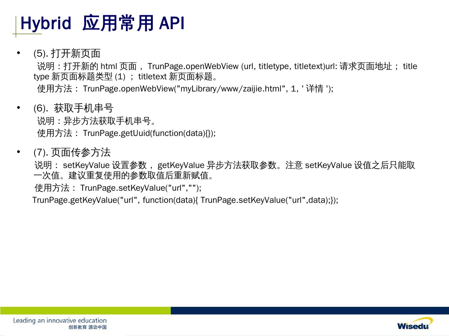 但区域实施人员在学习项目实施的过程中会遇到种种关于第三方应用集成的问题,且实施人员在 .... 说明:setKeyValue设置参数,getKeyValue异步方法获取参数。