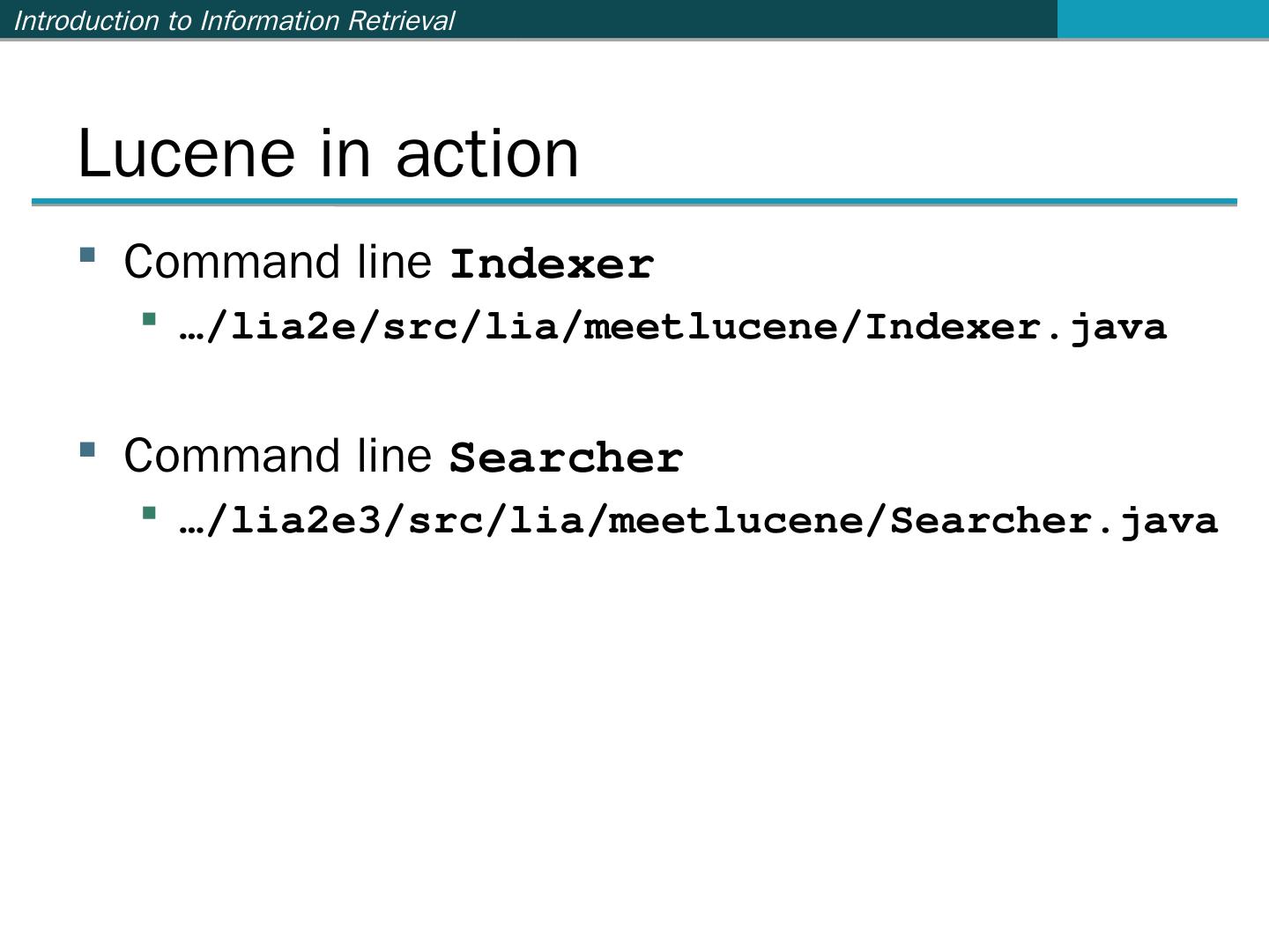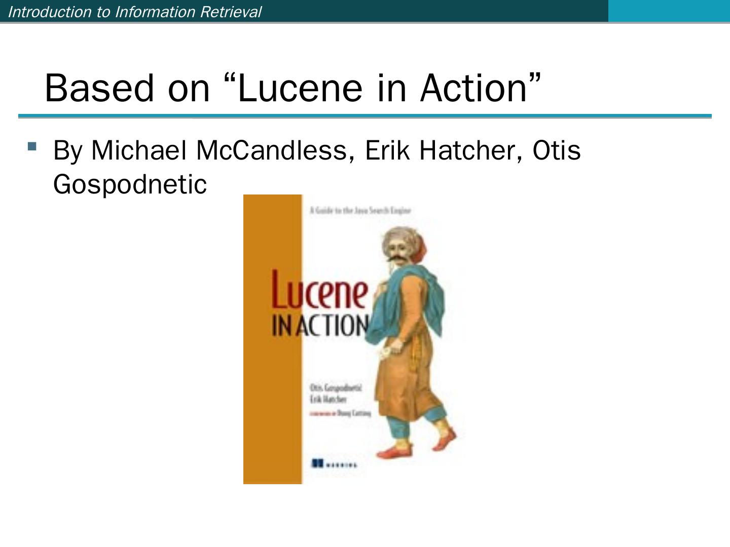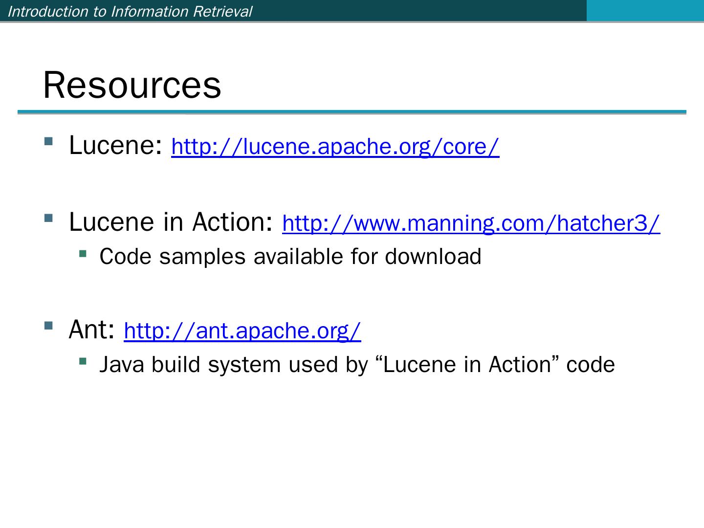 …and many more (see http://wiki.apache.org/lucene-java/PoweredBy) ... Ant: http://ant.apache.org/. Java build ... import org.apache.lucene.analysis.standard.