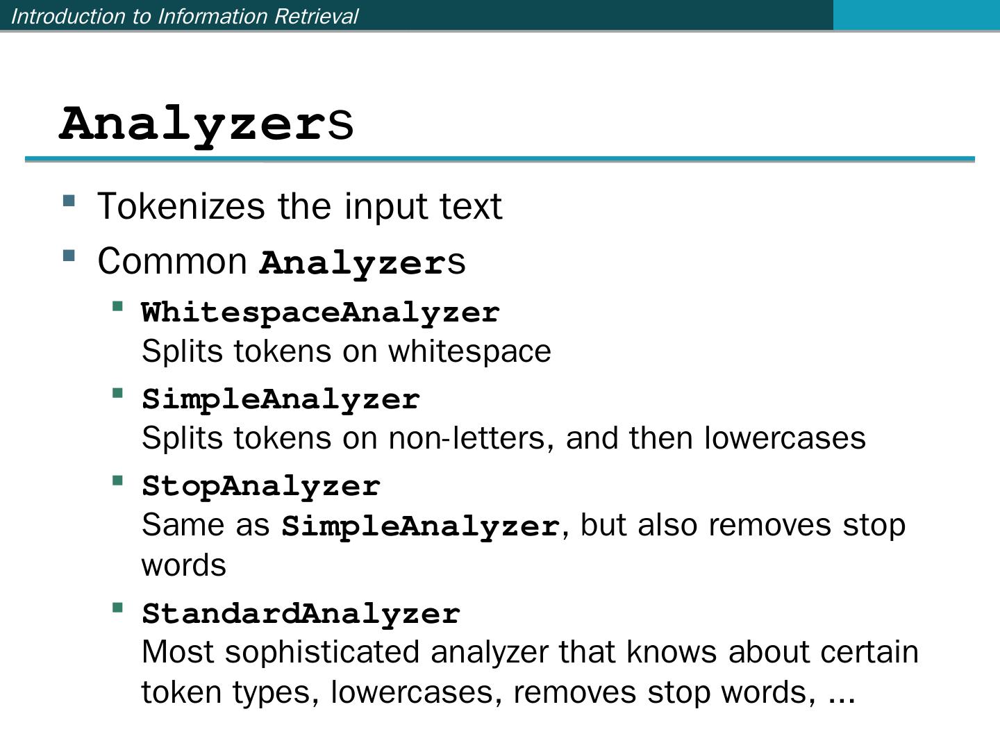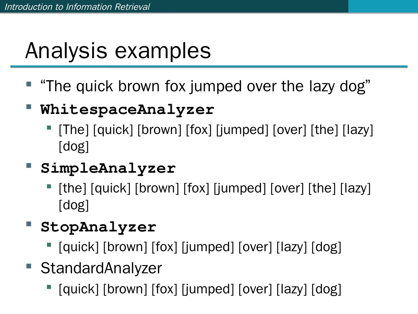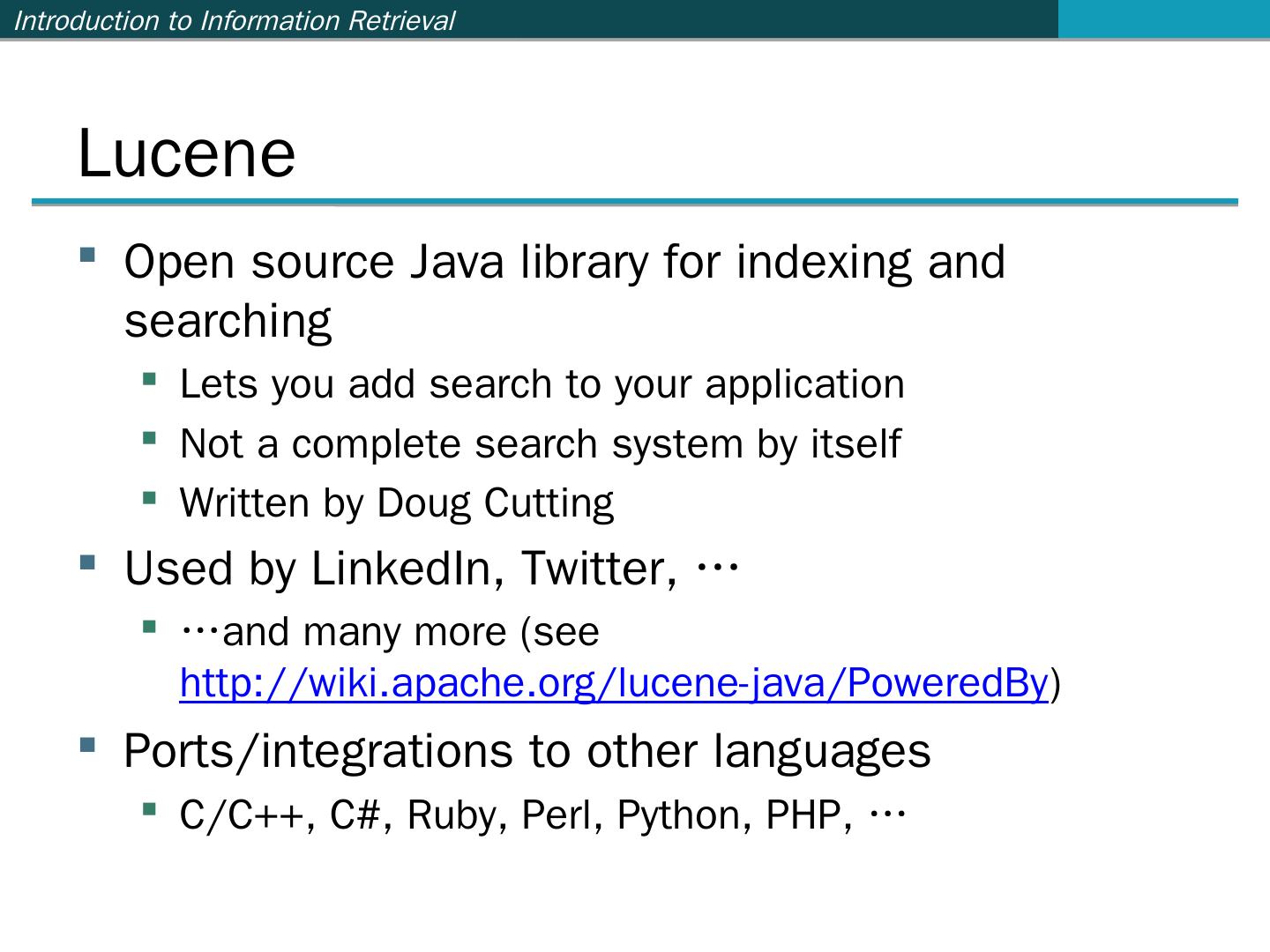 …and many more (see http://wiki.apache.org/lucene-java/PoweredBy) ... Ant: http://ant.apache.org/. Java build ... import org.apache.lucene.analysis.standard.