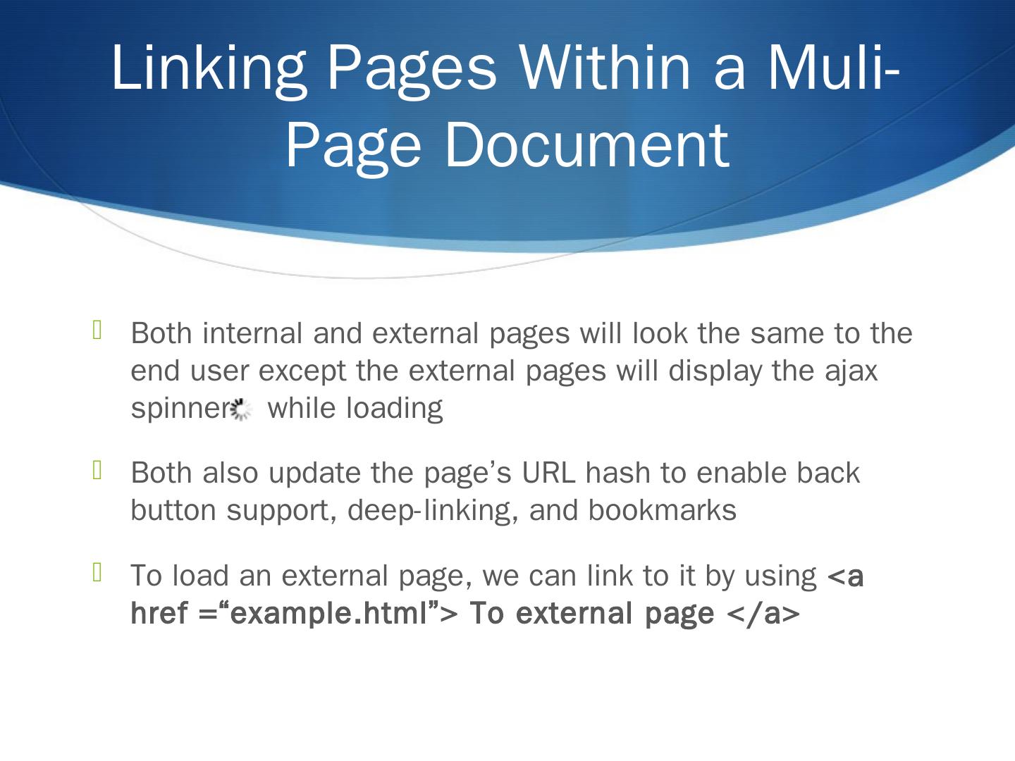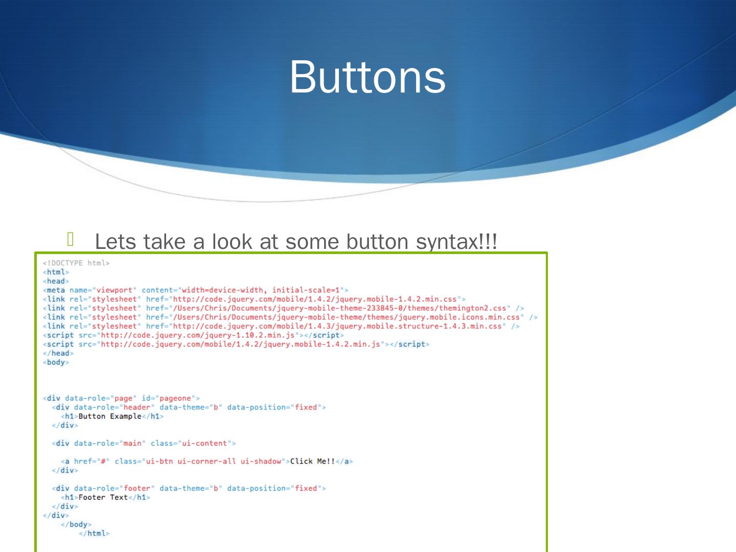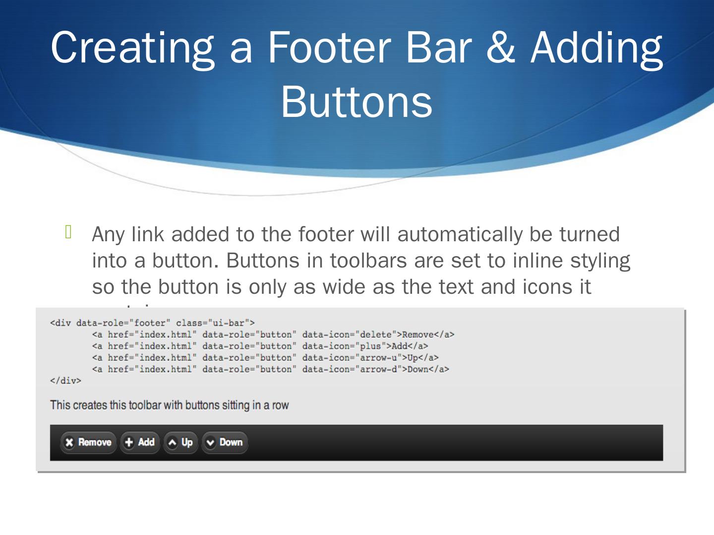 jQuery Mobile. An Introduction. What is jQuery Mobile. A framework built on top of jQuery, used for creating mobile web applications; Designed to make ...