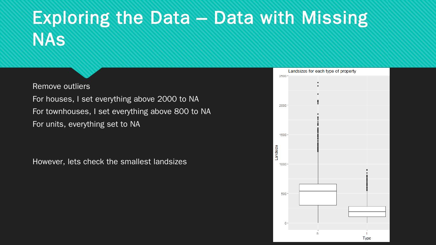 Landsize ONLY for townhouses and houses. Used xgboost to impute missing values. For all three, used all existing data in training set. Adding in extra features?