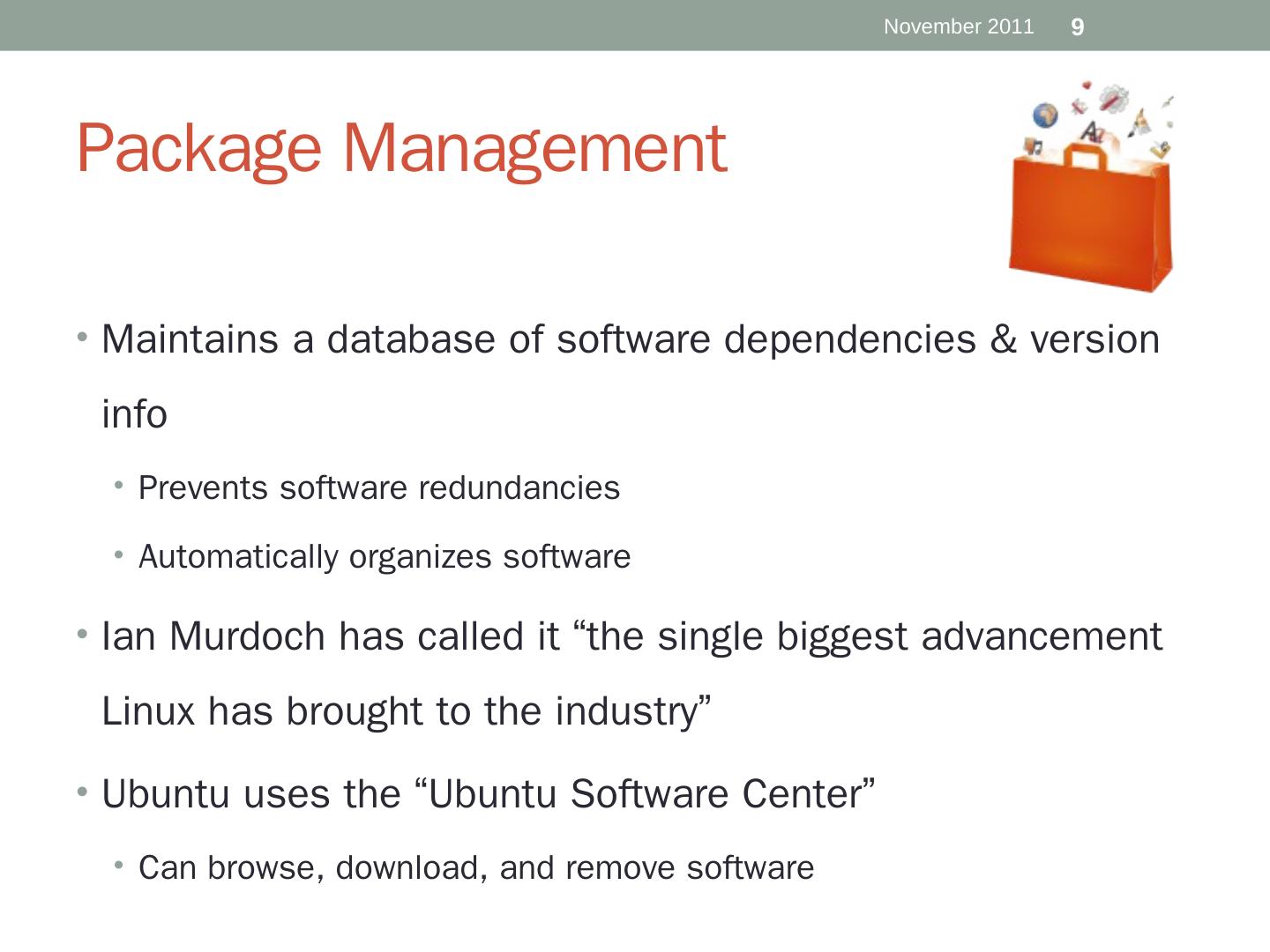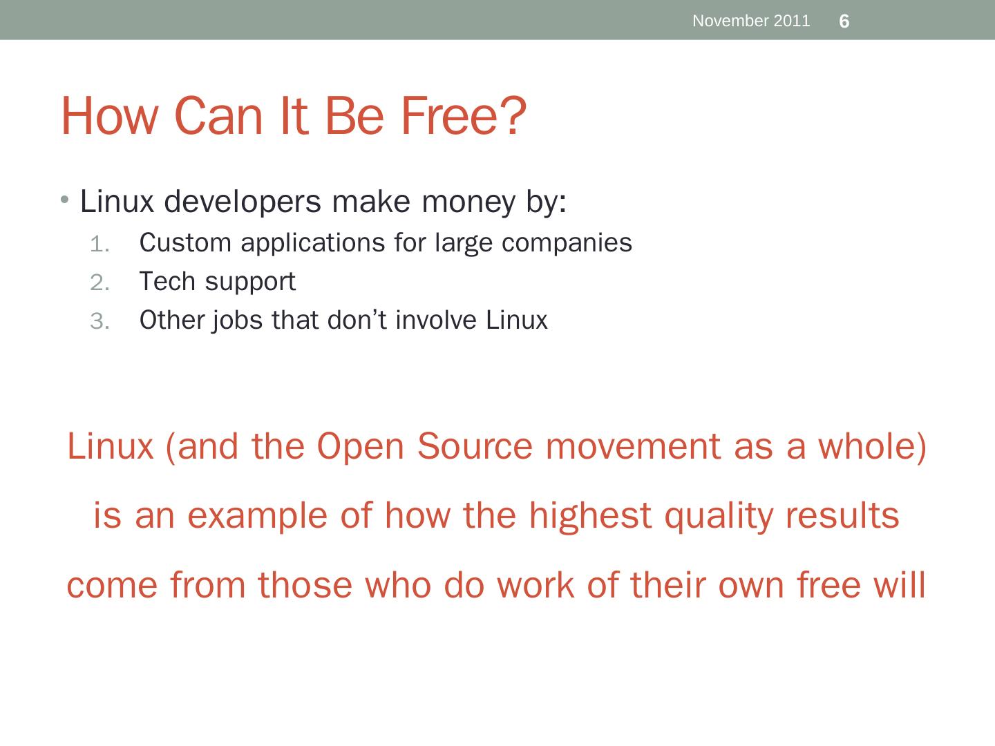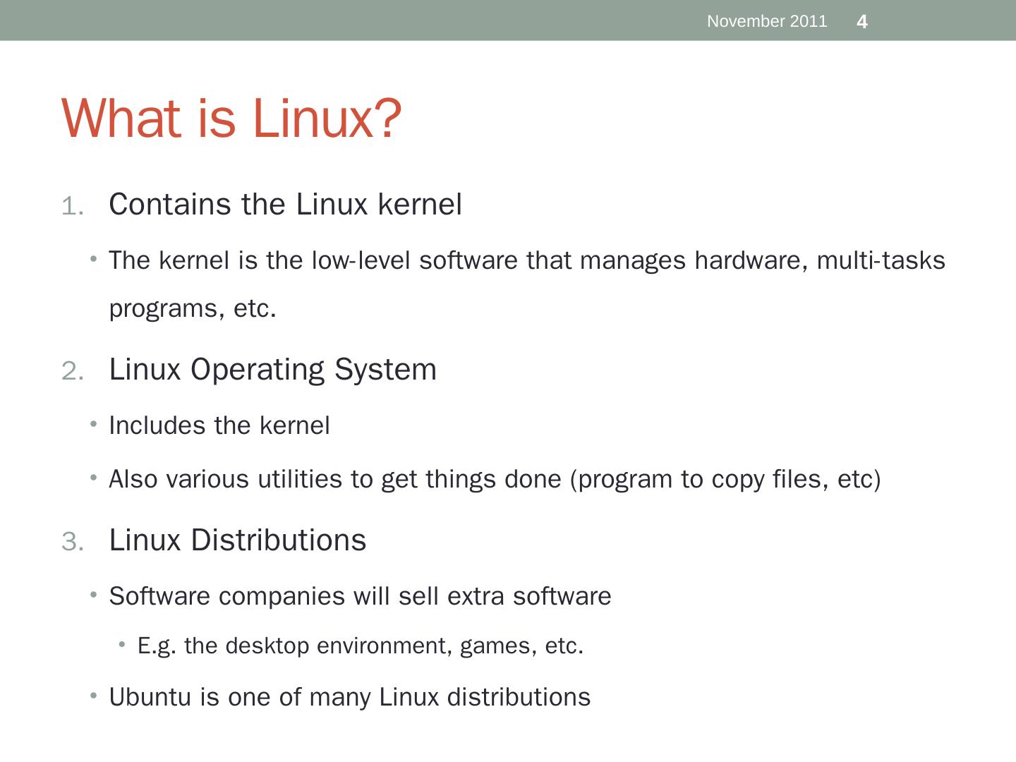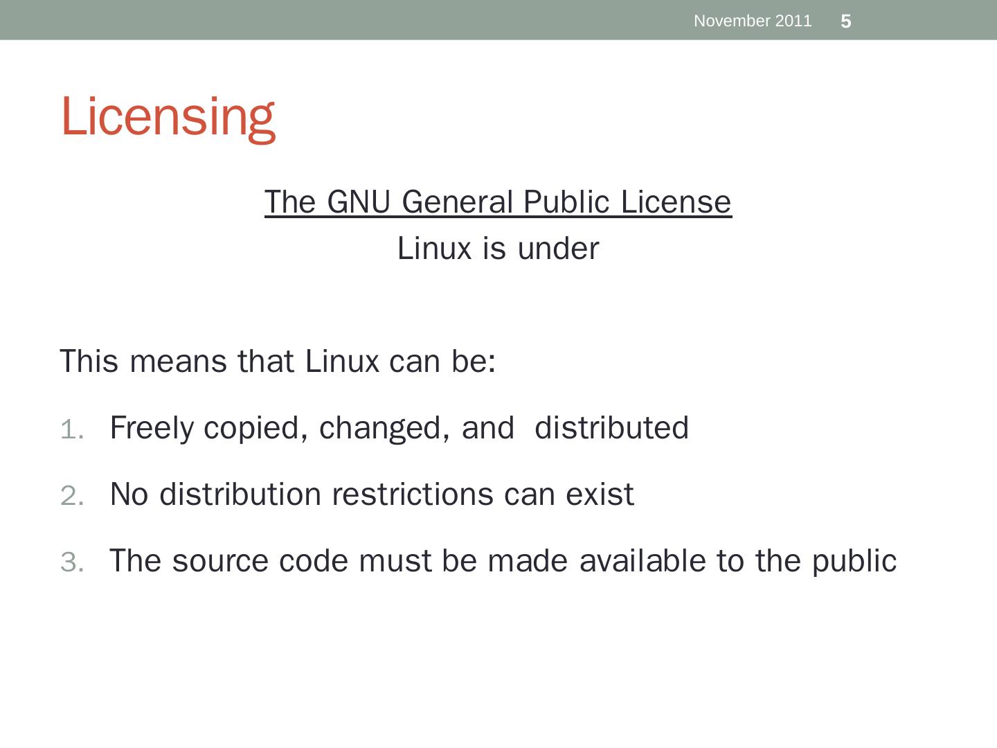 Software companies will sell extra software. E.g. the desktop environment, games, etc. Ubuntu is one of many Linux distributions. 4. November 2011. Licensing.