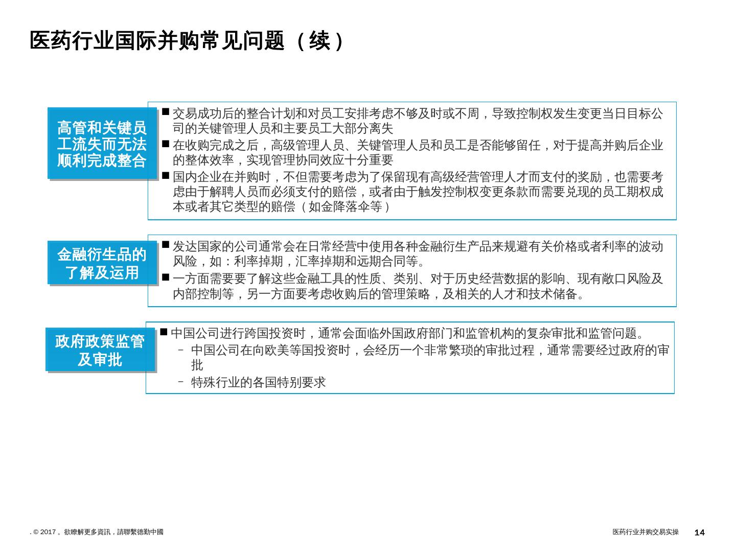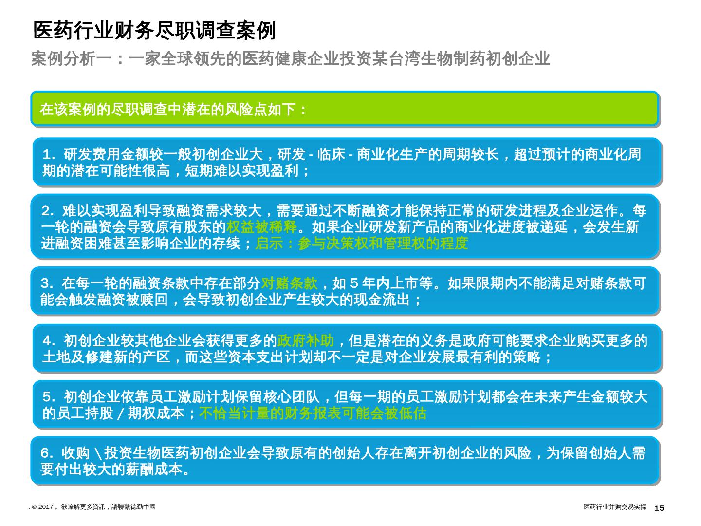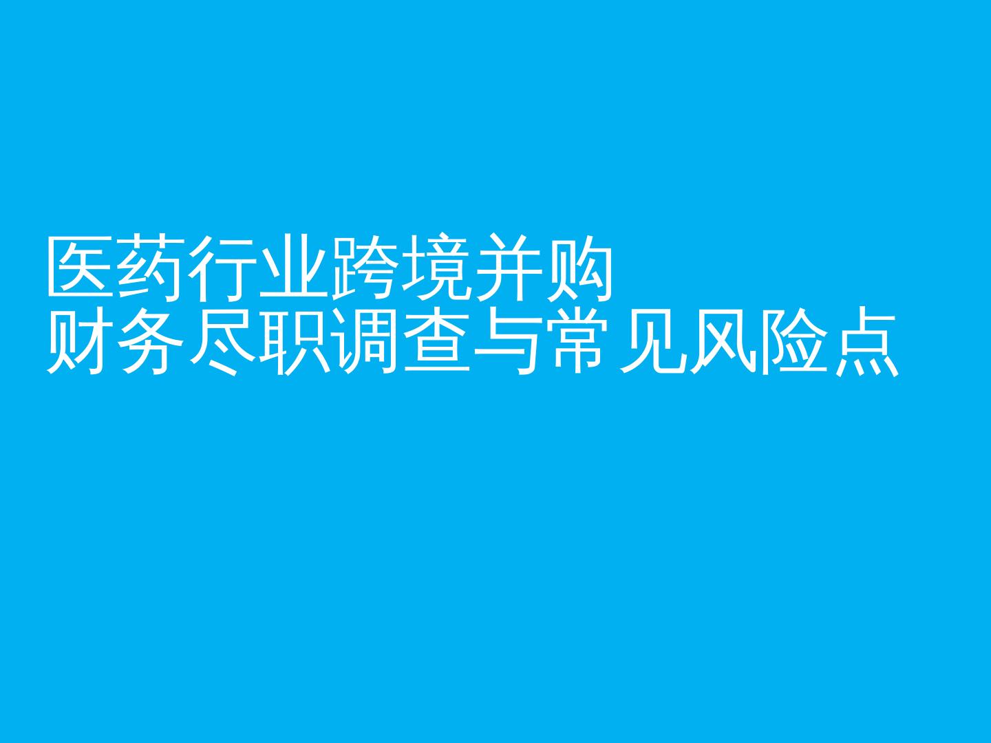 3 .医药行业跨 境 并购 财务尽职 调查与常见 风险点