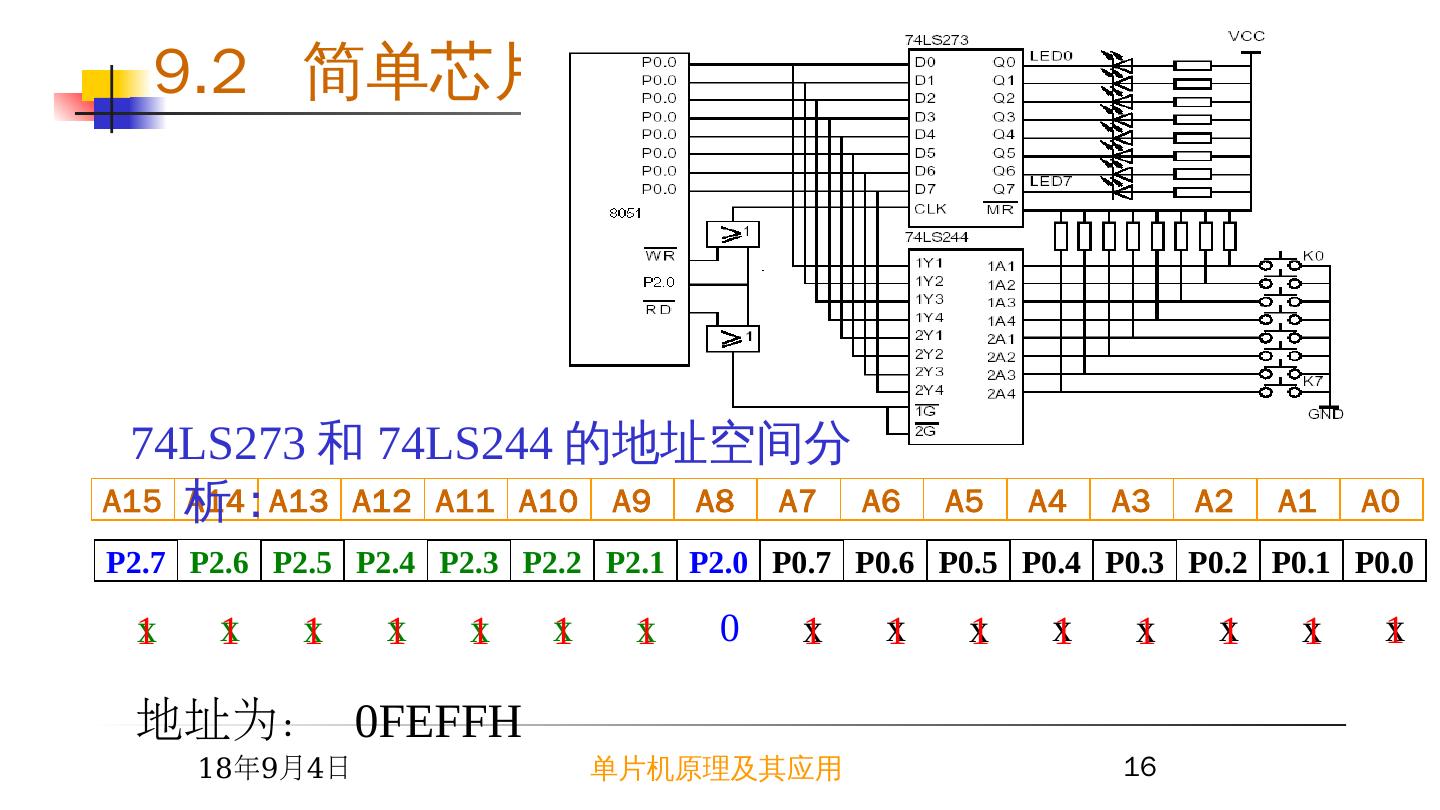 15 .2015/6/23 单片机原理及其应用 15 ( 3 )用 74LS273 和 74LS244 扩展 I/O 口 9.2 简单芯片扩展 I/O 接口