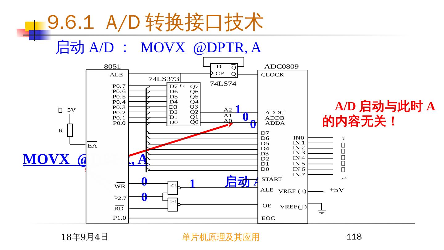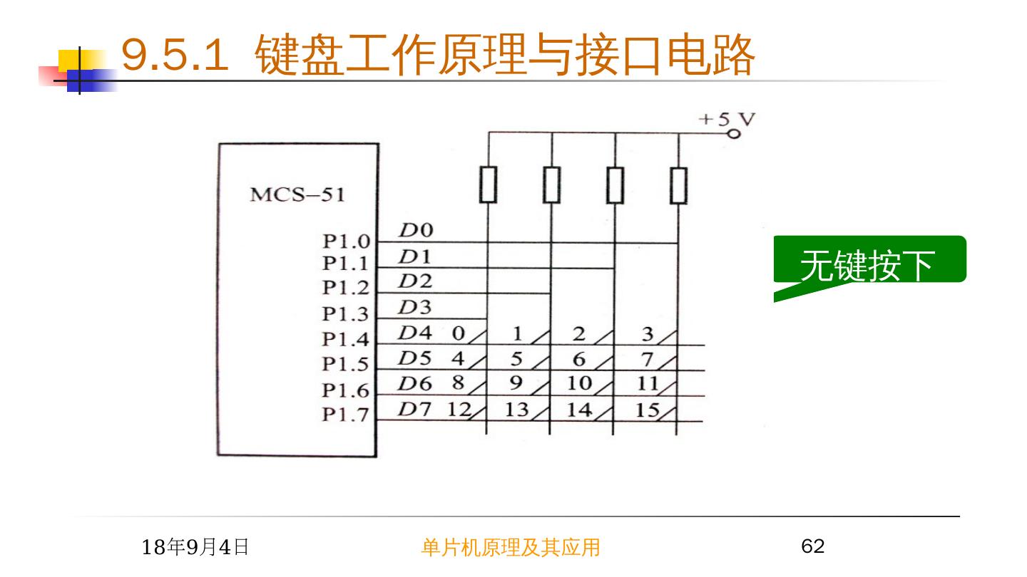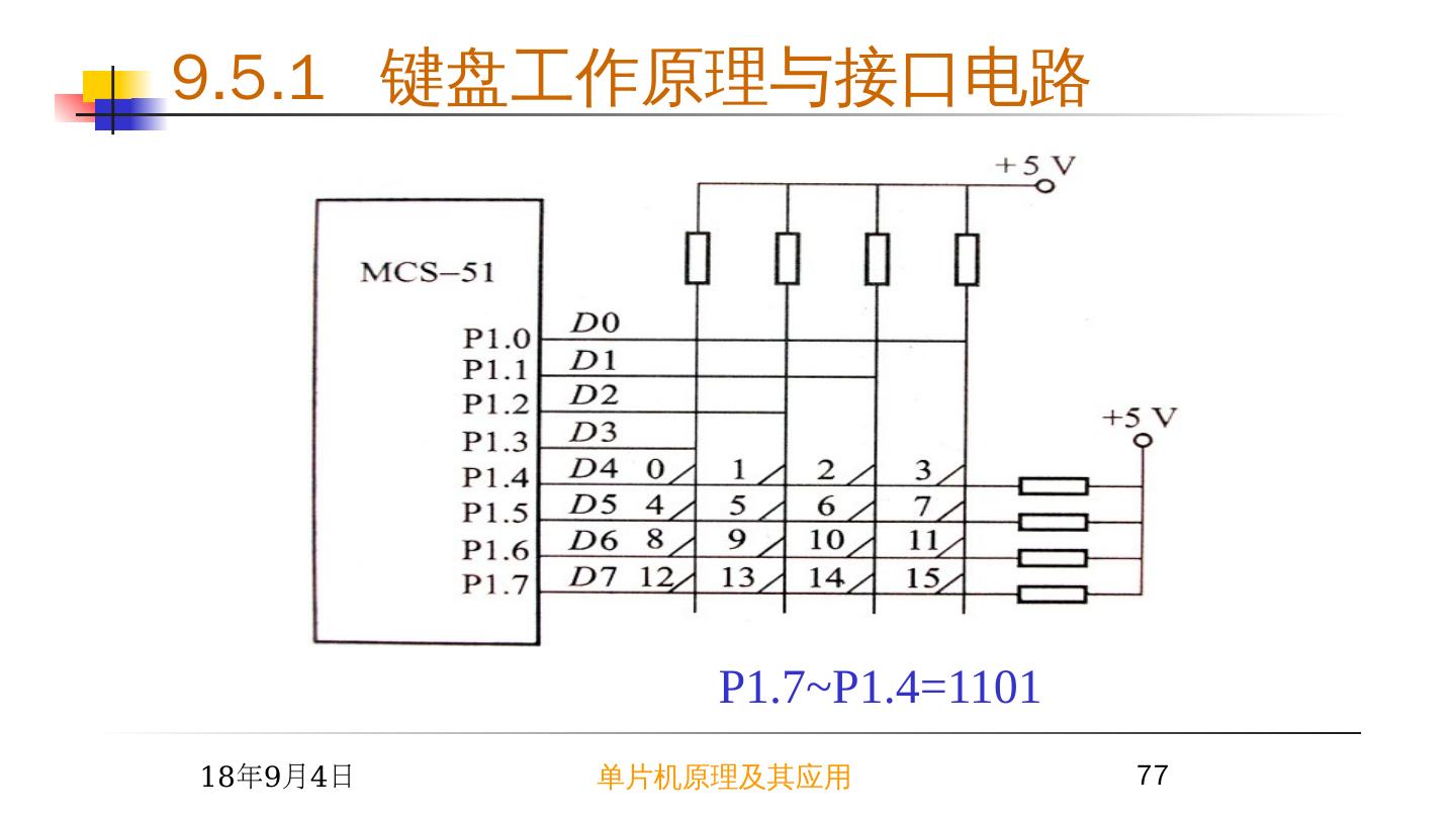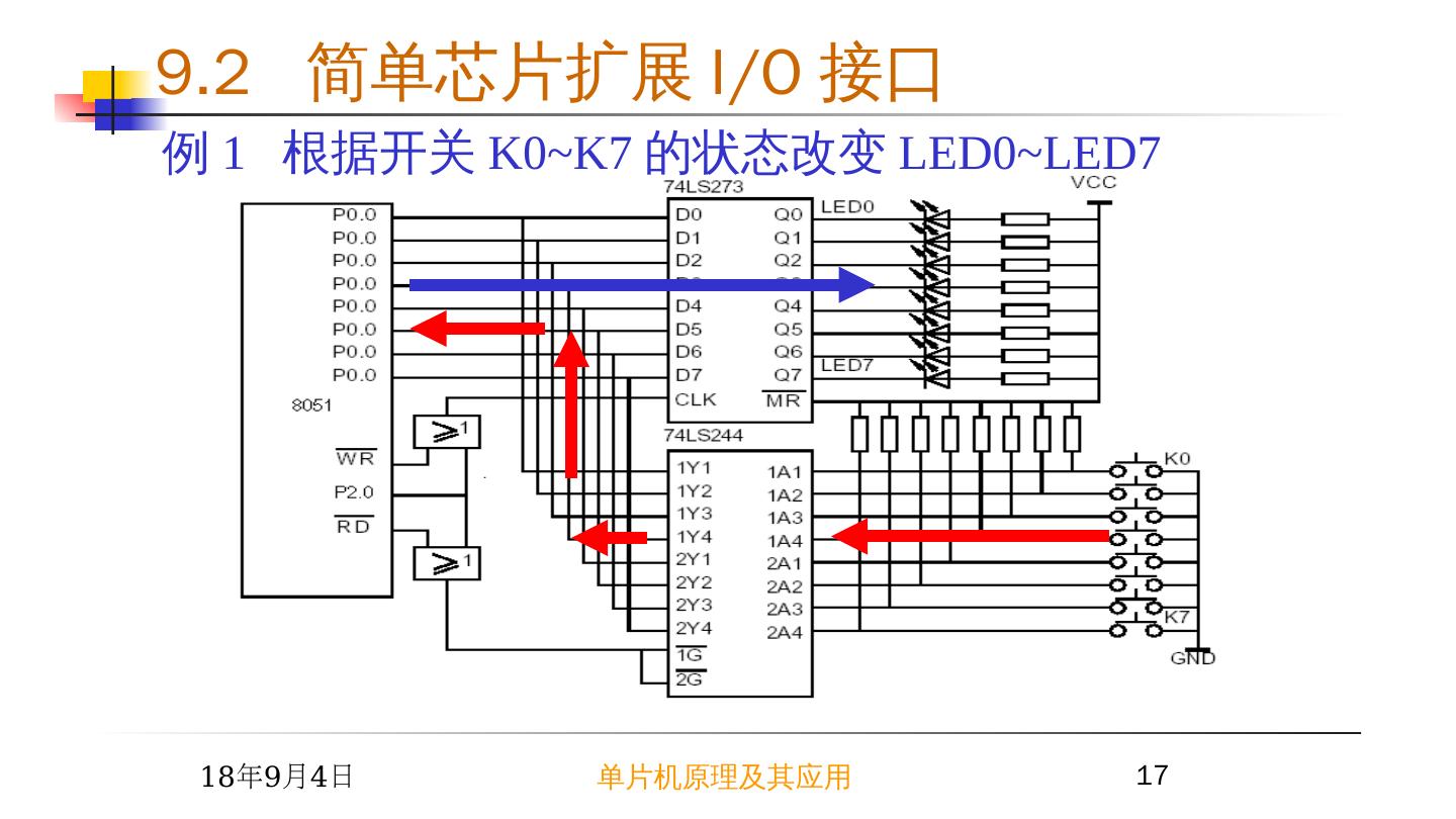 17 .2015/6/23 单片机原理及其应用 17 9.2 简单芯片扩展 I/O 接口 例 1 根据开关 K0~K7 的状态改变 LED0~LED7