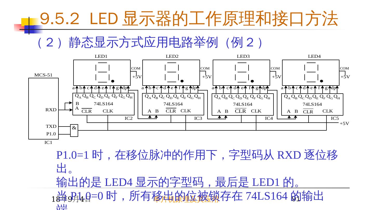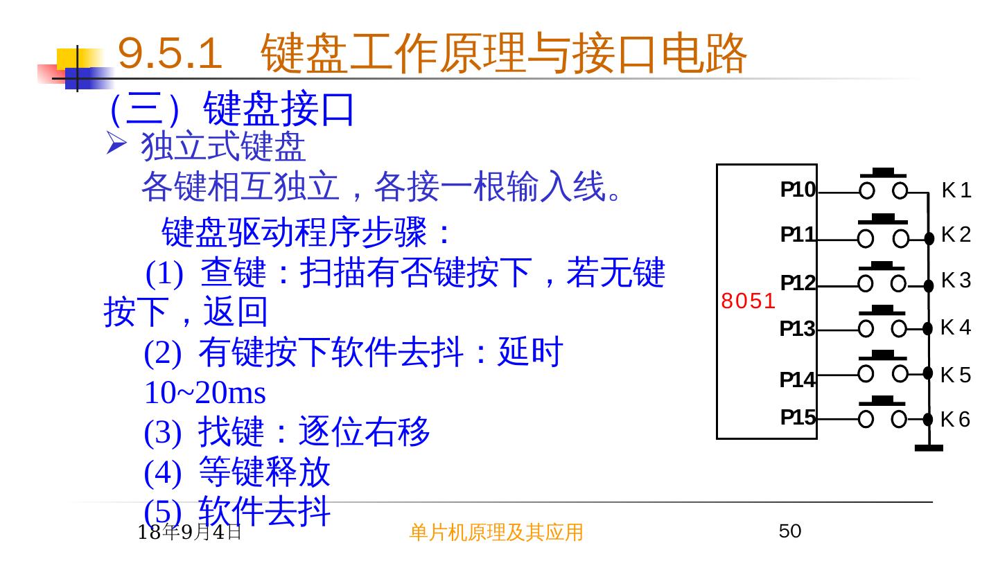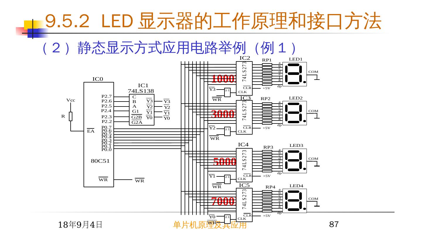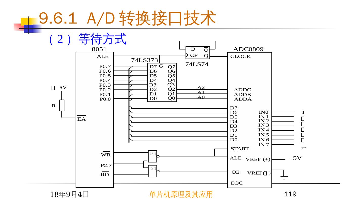 17 .2015/6/23 单片机原理及其应用 17 9.2 简单芯片扩展 I/O 接口 例 1 根据开关 K0~K7 的状态改变 LED0~LED7