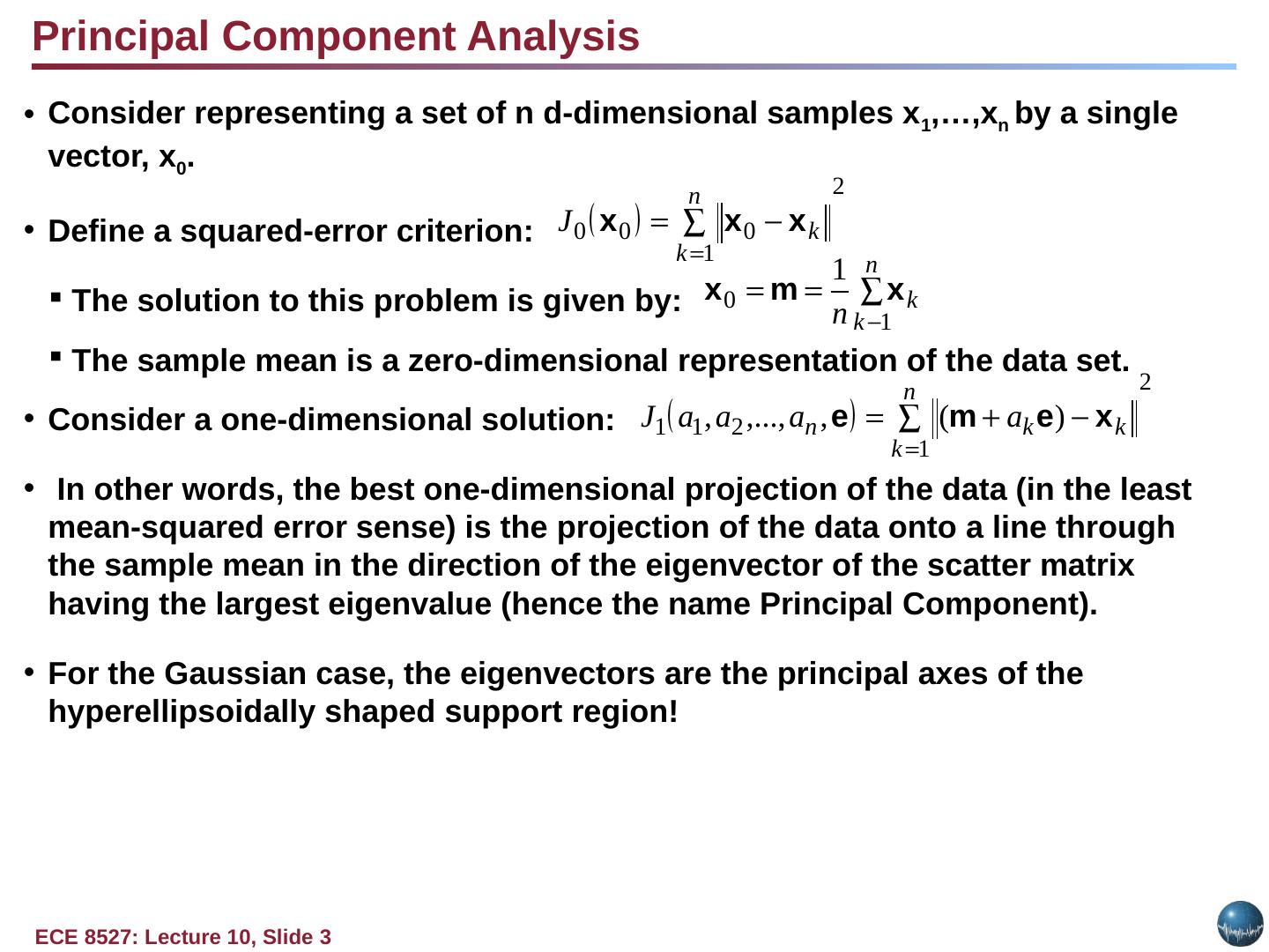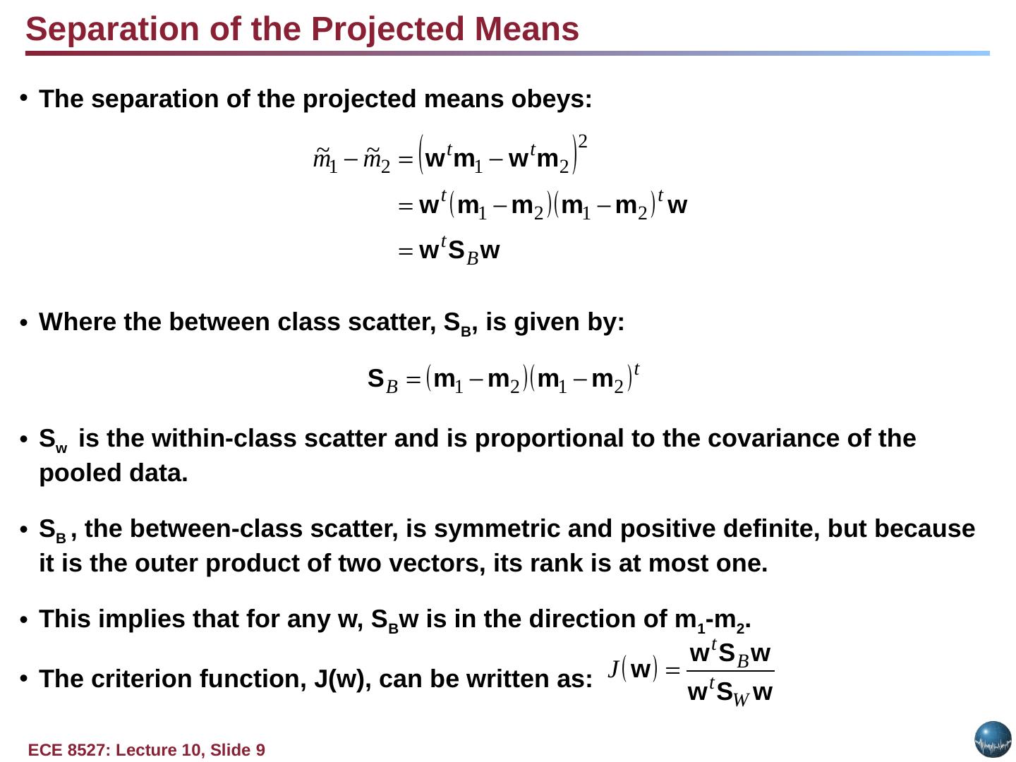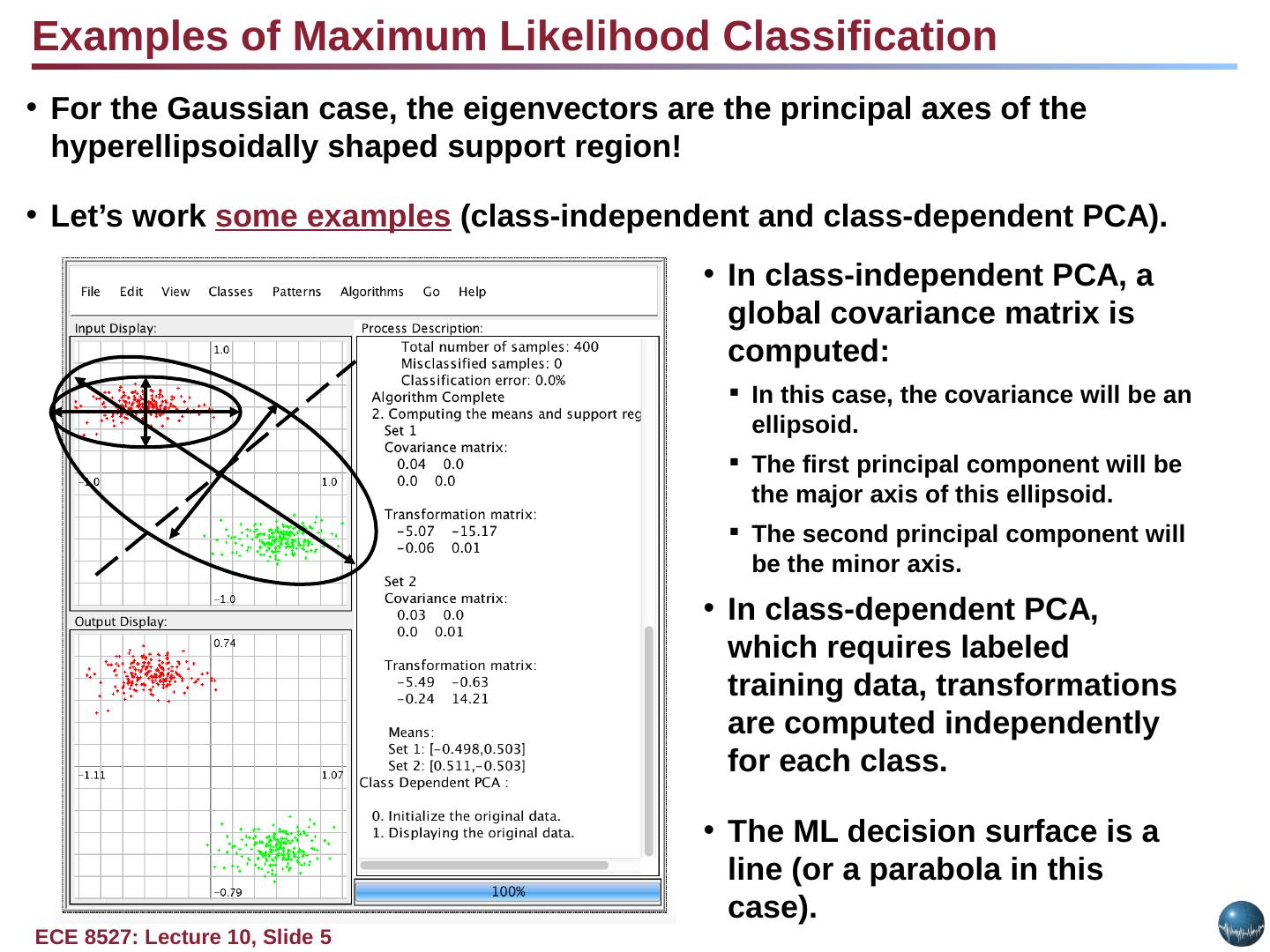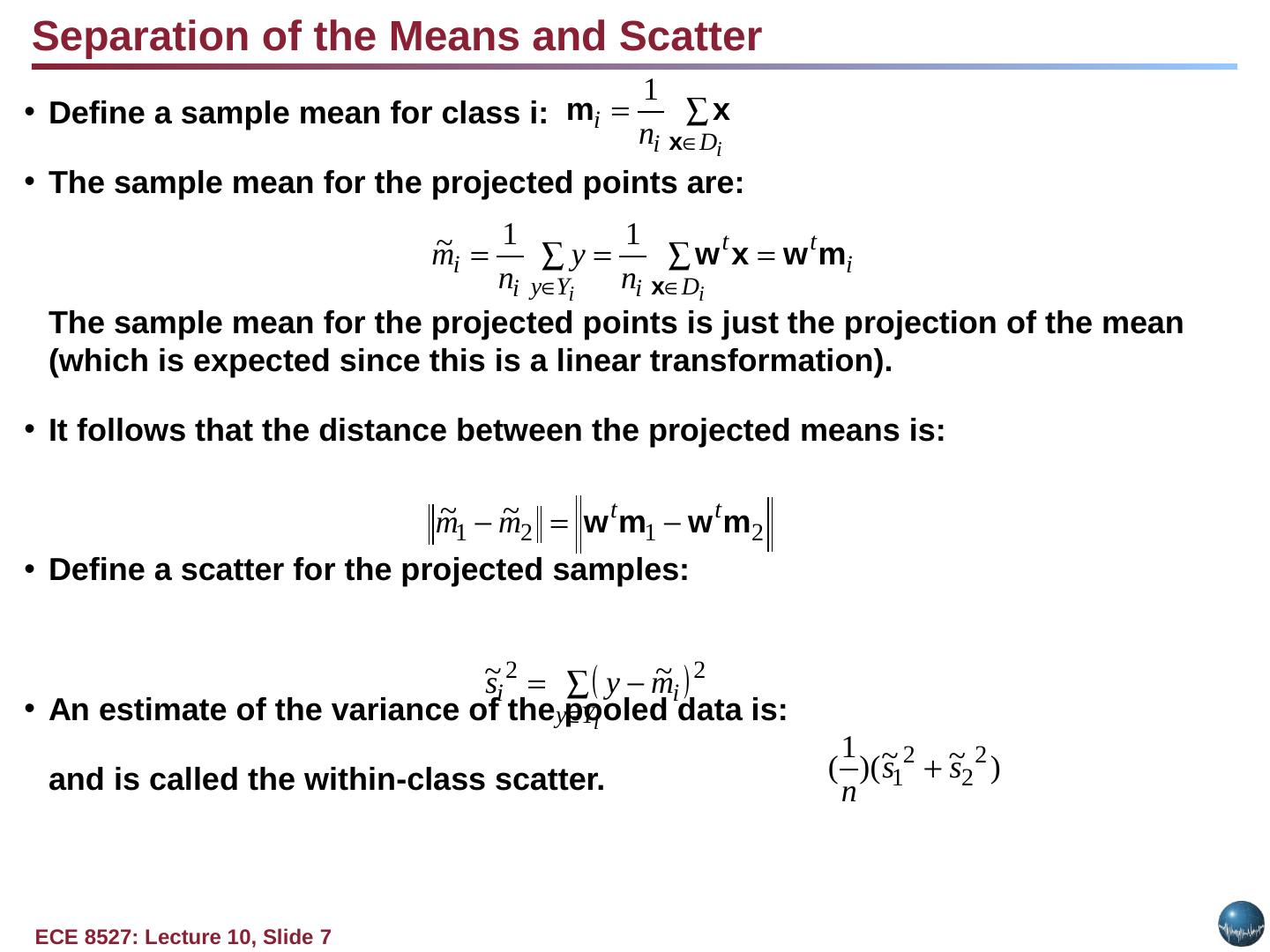 Multiple Discriminant Analysis (MDA): projection that best separates the data in a least-squares sense. Independent Component Analysis (IDA): projection that ...