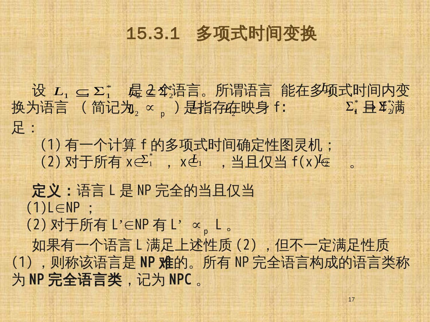 NP类语言举例——无向图的团问题。 该问题的输入是一个有n个顶点的无向图G=(V,E)和一个整数k。要求判定图G是否包含一个k顶点的完全子图(团),即判定是否 ...