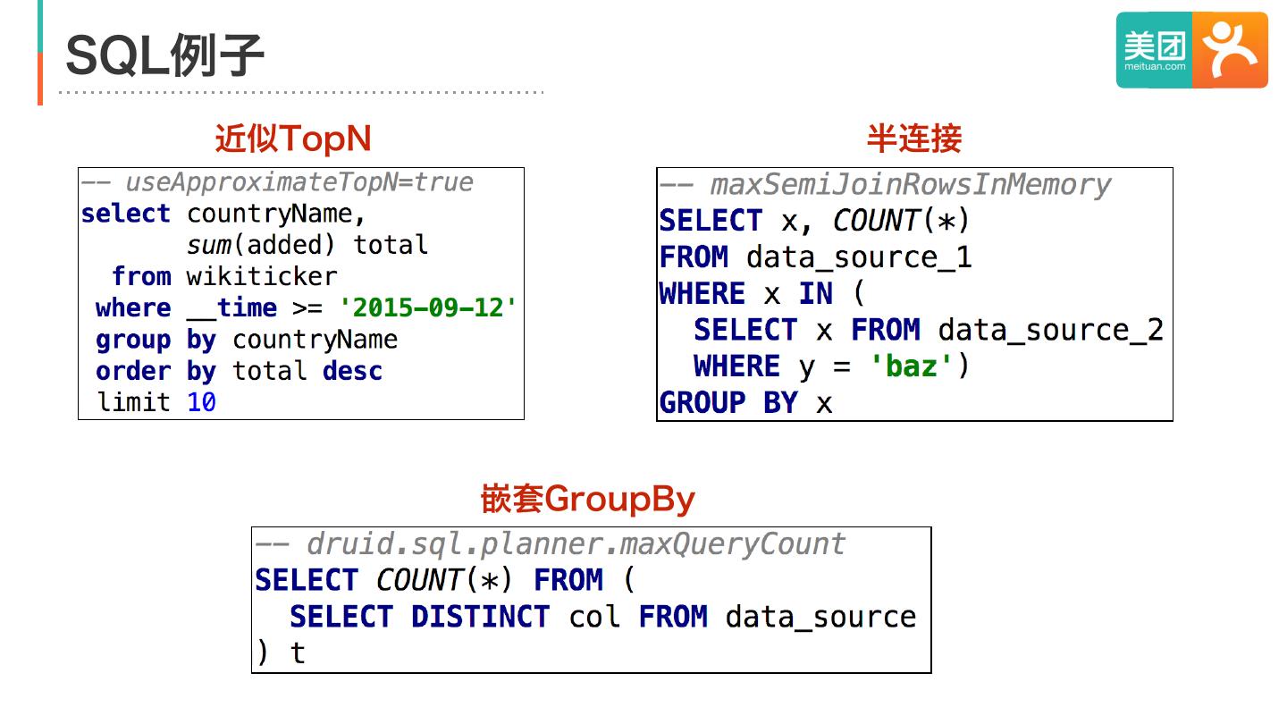 9 .SQL例子 近似TopN 半连接 嵌套GroupBy