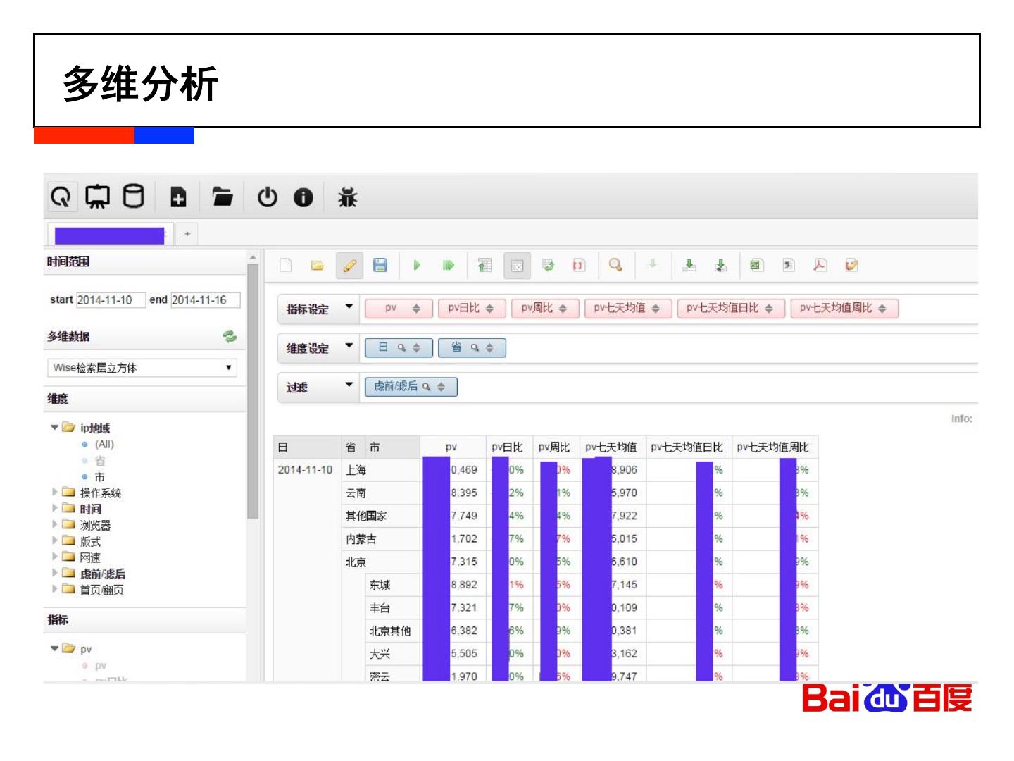 12 .案例分析-2 • 百度云交易系统 – 提供订单、账单、扣费、交易流水等T级别量数据的存储和实时查 询服务 – 12T数据量 – 每5分钟导入 • 百度云数据中心 – 提供百度云经营分析,产品分析,用户分析等多种分析服务 – 提供多维度(100+)分析、高性能(秒级)BI能力 – 日处理数量1TB+ – 分钟级导入