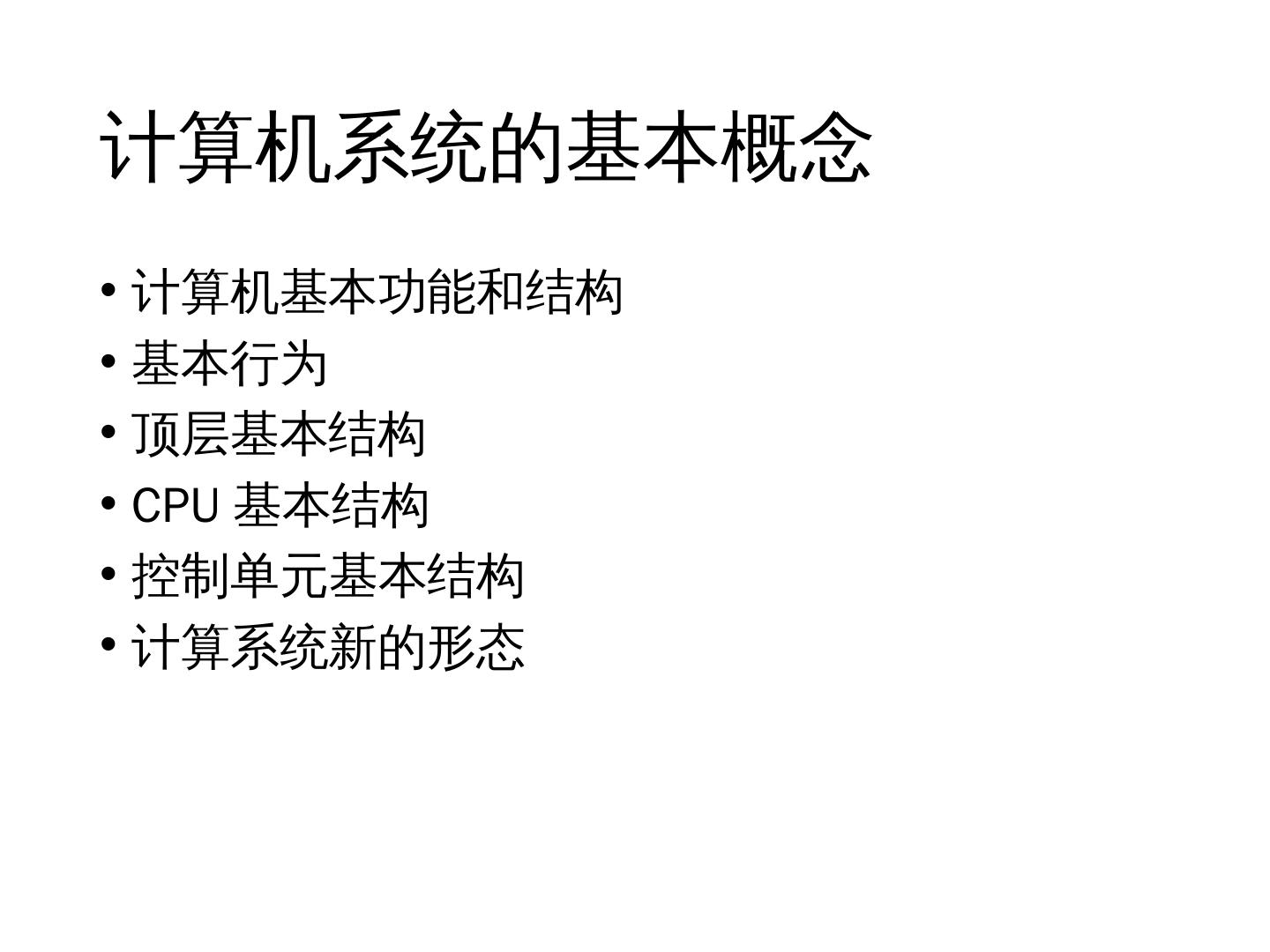 18 .计算机系统的基本概念 计算机基本功能和结构 基本行为 顶层基本结构 CPU 基本结构 控制单元基本结构 计算系统新的形态